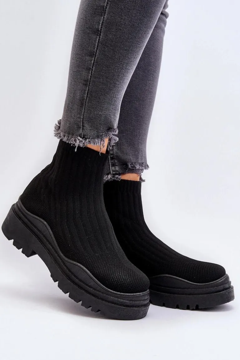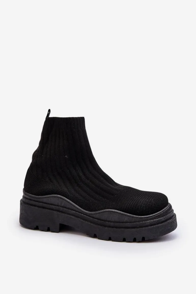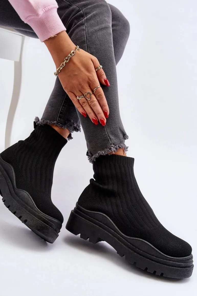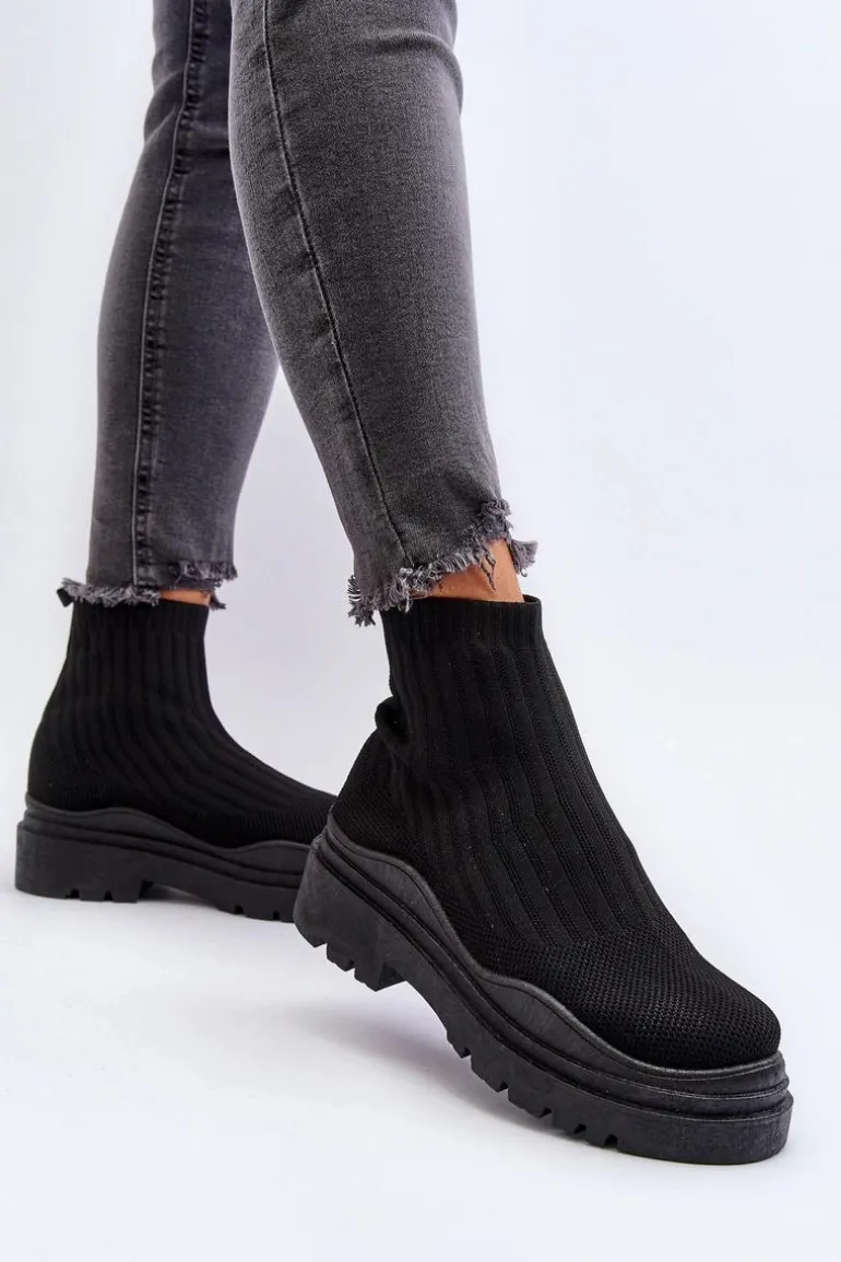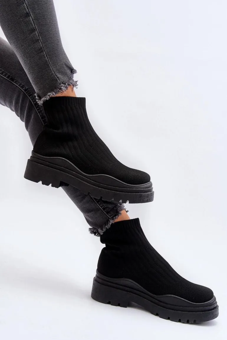 Skarpetkowe Botki Na Masywnej Podeszwie Wsuwane Damskie Czarne Elipara
