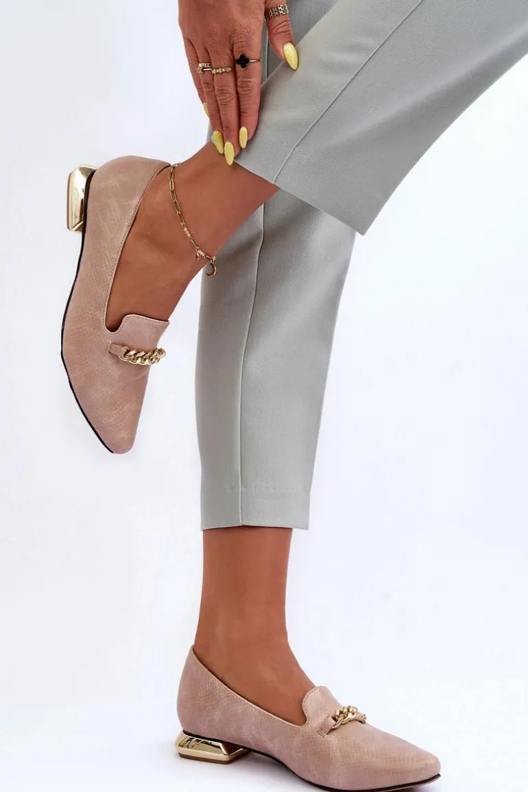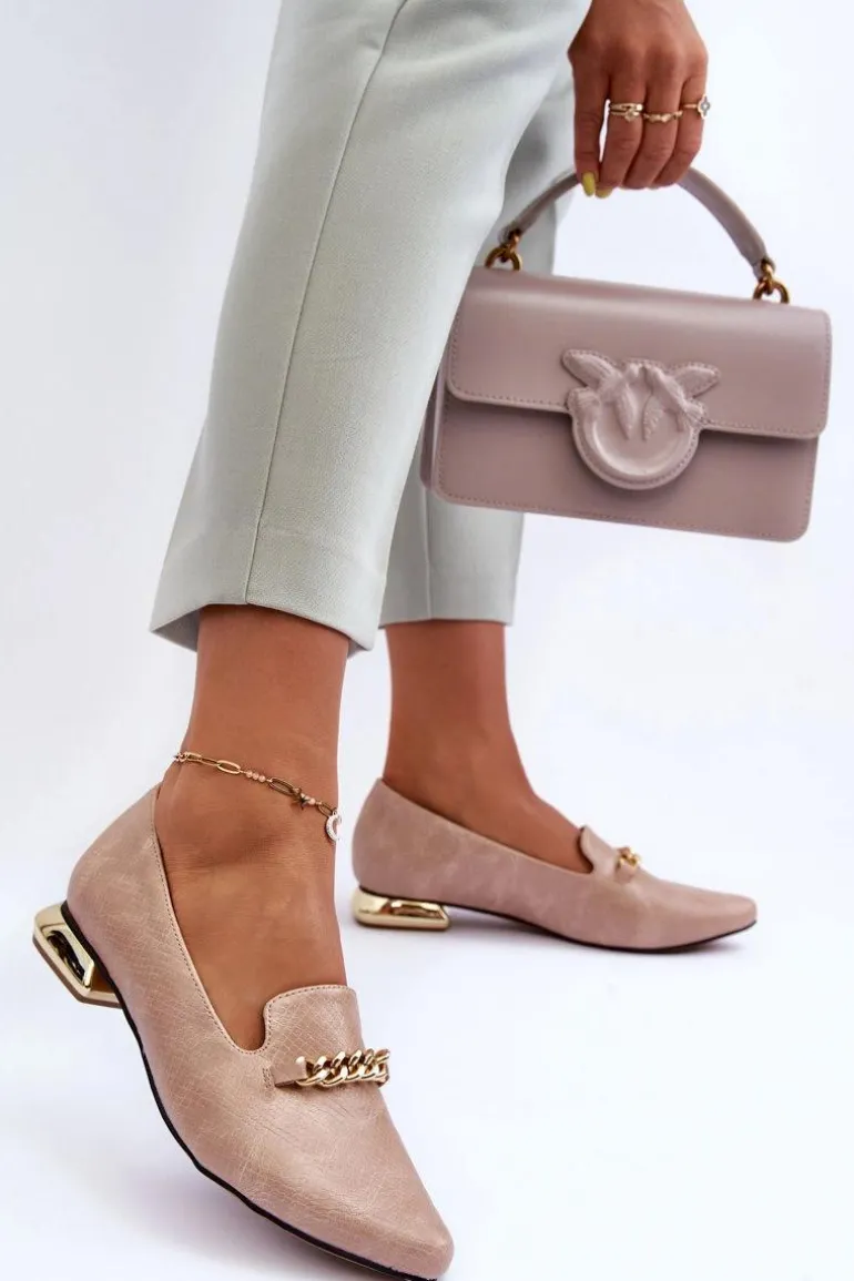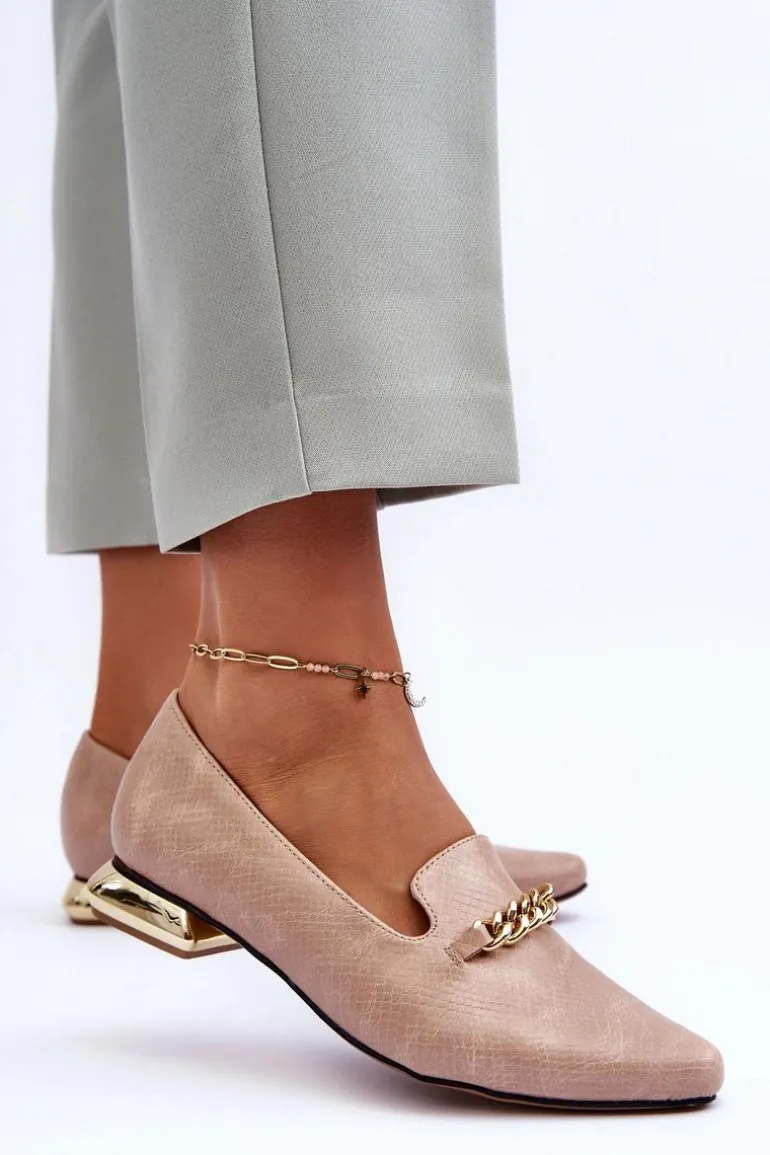 Eleganckie baleriny zostały wykonane z eko skóry. Buty te osadzono na płaskim obcasie. Profilowana wkładka wykonana ze skóry naturalnej zapewni komfortowe użytkowanie obuwia. Migdałowy nosek optycznie wysmukli nogi. Baleriny wykorzystasz do wielu stylizacji zarówno z sukienkami, spódniczkami jak i spodniami. Przy wyborze rozmiaru prosimy sugerować się tabelą rozmiarów.