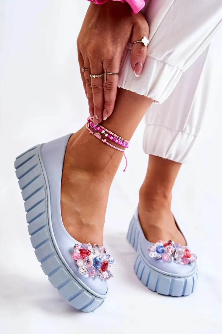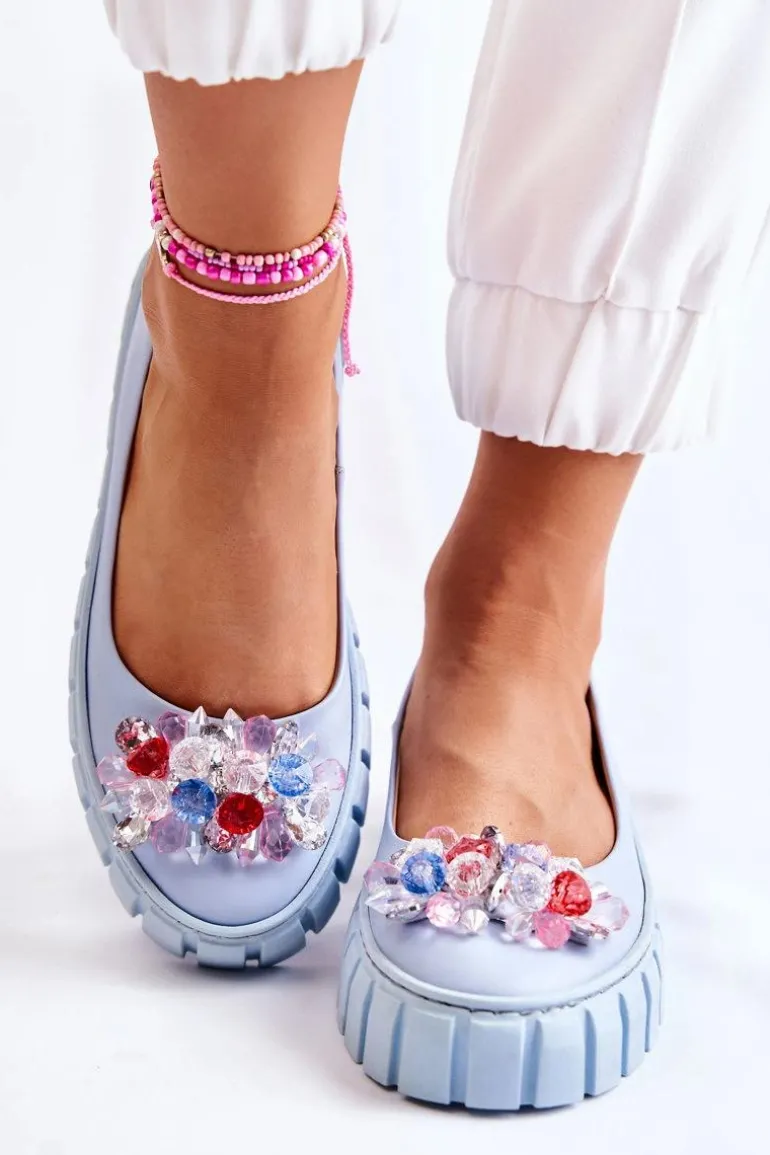 Damskie baleriny wykonane z naturalnej skóry z dbałością o każdy detal. O komfort zadba miękka, skórzana wkładka. Podeszwa wykonana z gumowego tworzywa ze żłobieniami po bokach. Dodatkowo jest antypoślizgowa. Zapiętek jest usztywniany. Z przodu elegancka ozdoba w postaci imitacji kryształków doda tym butom uroku. Nosek zaokrąglony. Baleriny dopełnią wiele Twoich stylizacji. Przy wyborze rozmiaru prosimy sugerować się tabelą rozmiarów.