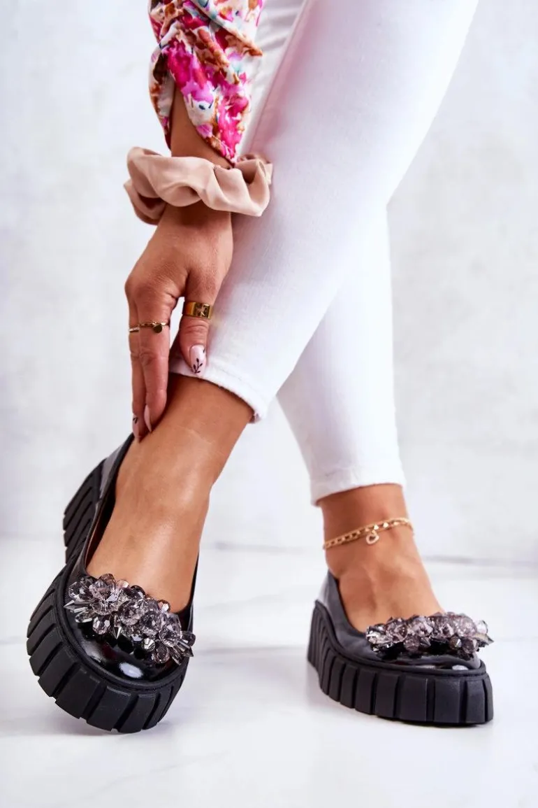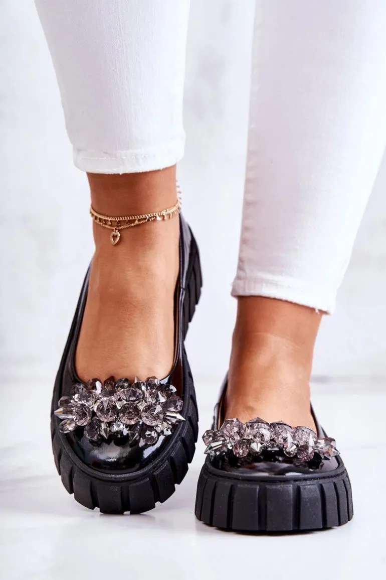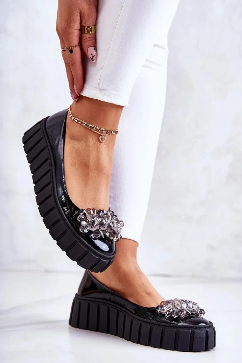 Skórzane Baleriny Na Platformie Z Ozdobą Czarne Ladette