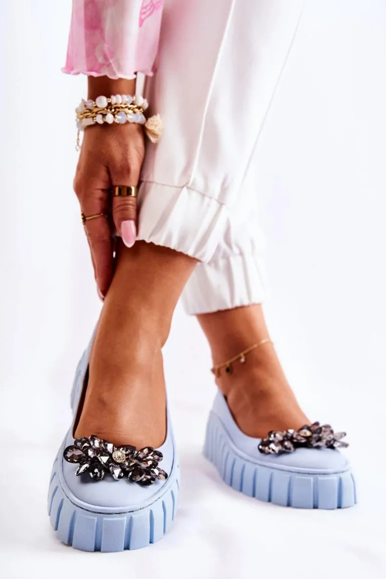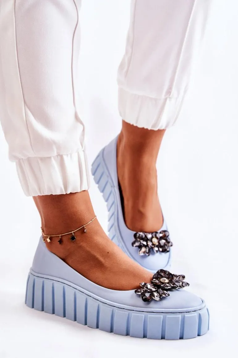 Skórzane Baleriny Na Platformie Z Ozdobą Niebieskie Ladette