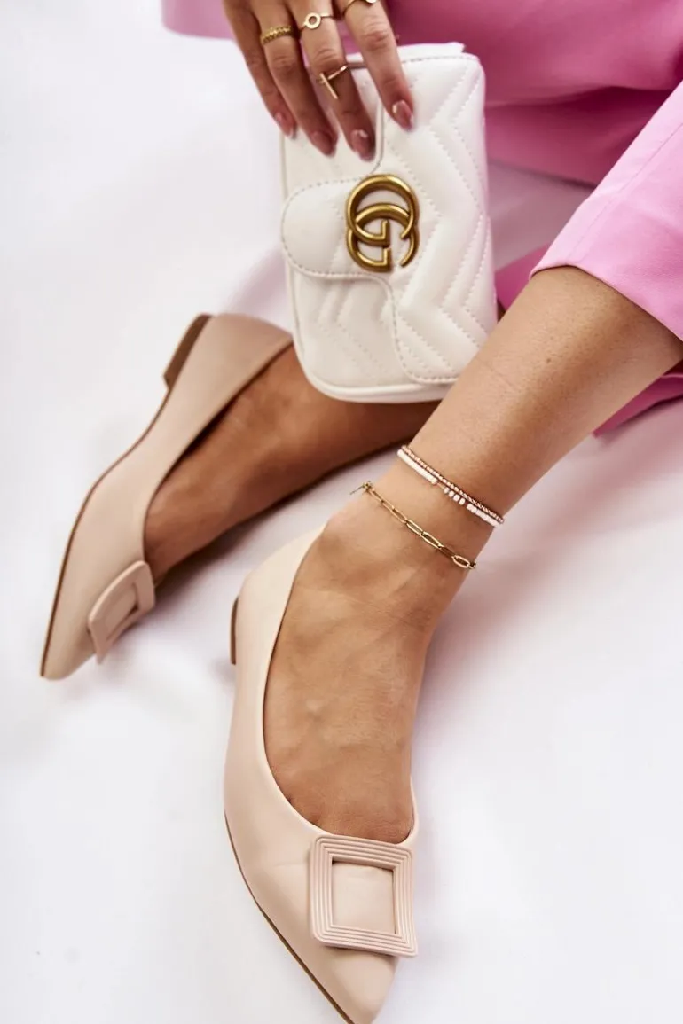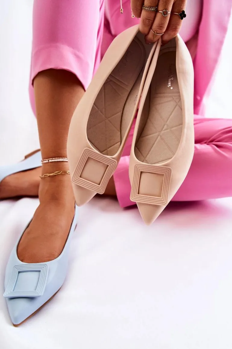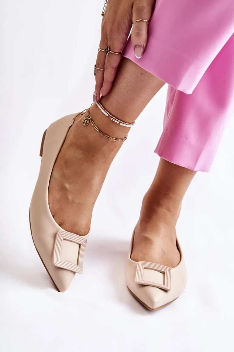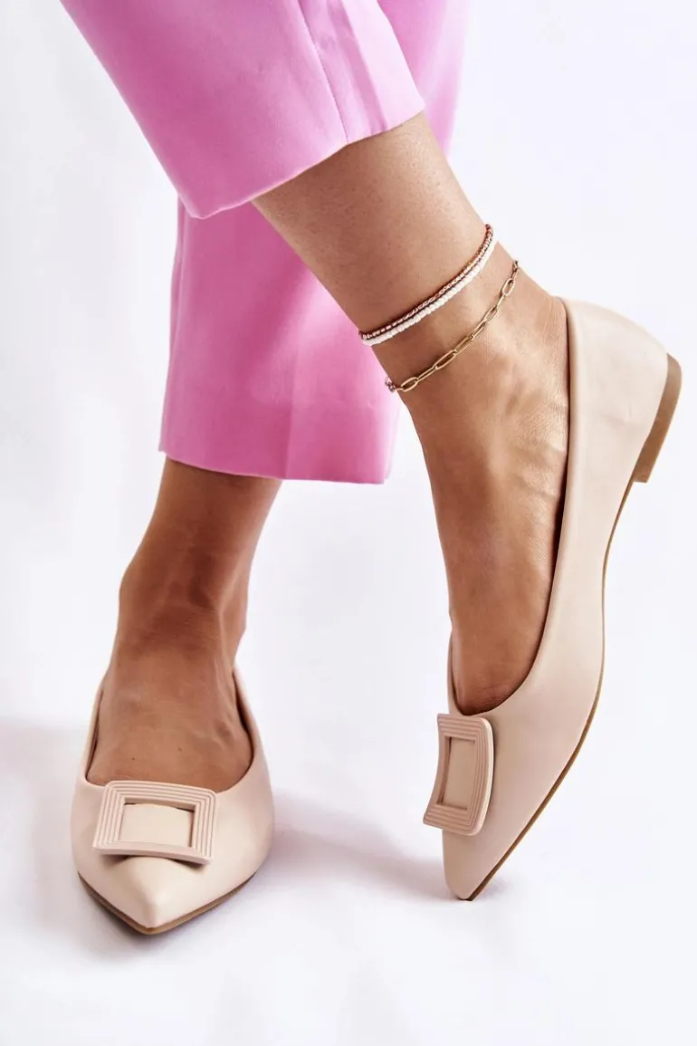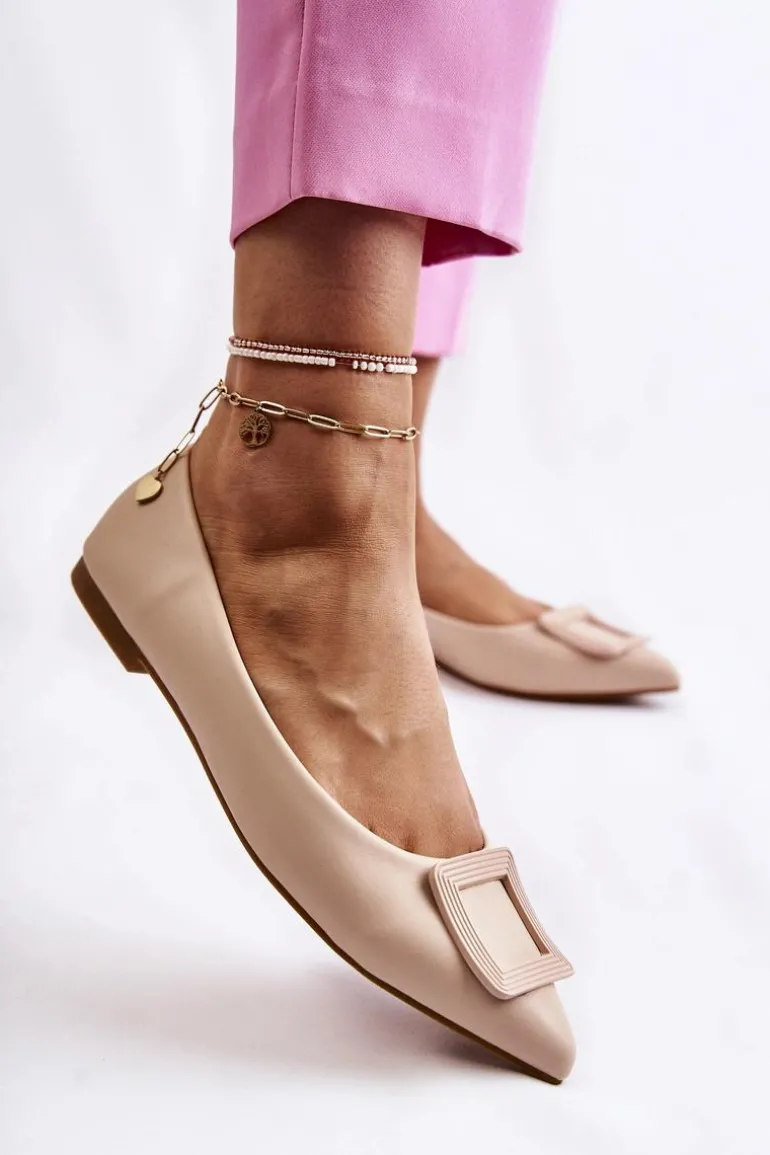 Skórzane Baleriny Z Ozdobą W Szpic Beżowe Simone