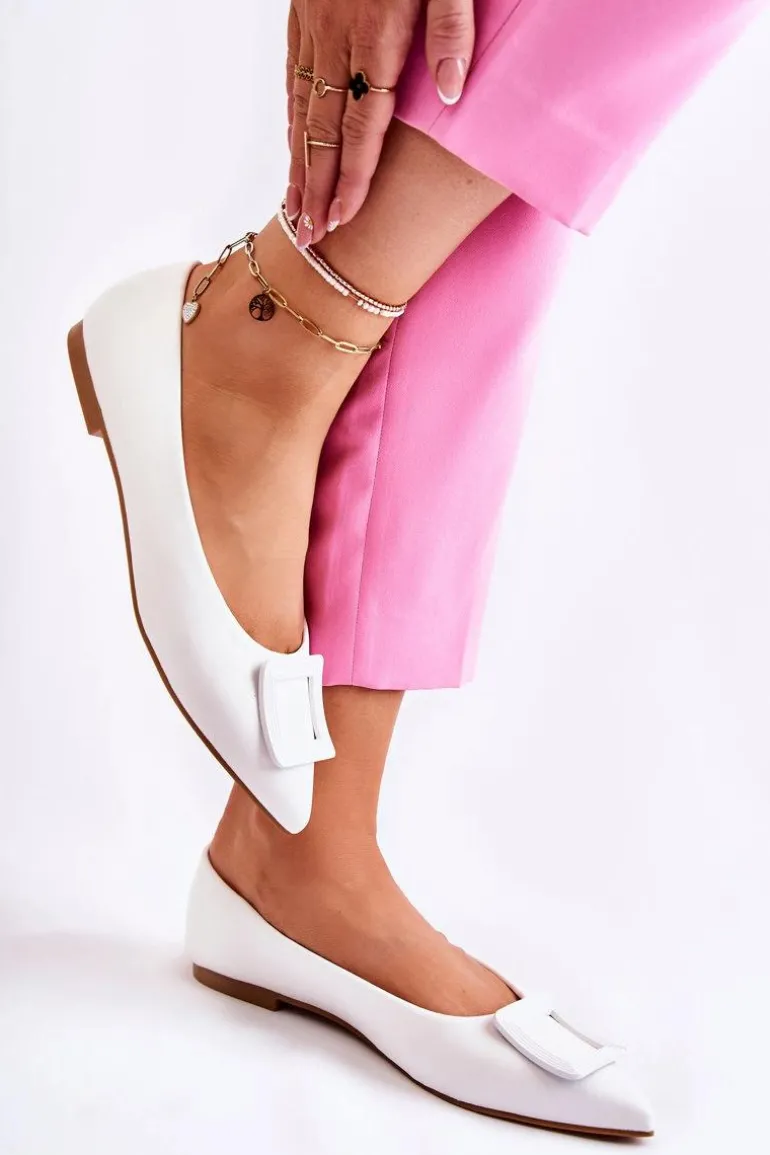 Skórzane Baleriny Z Ozdobą W Szpic Białe Simone