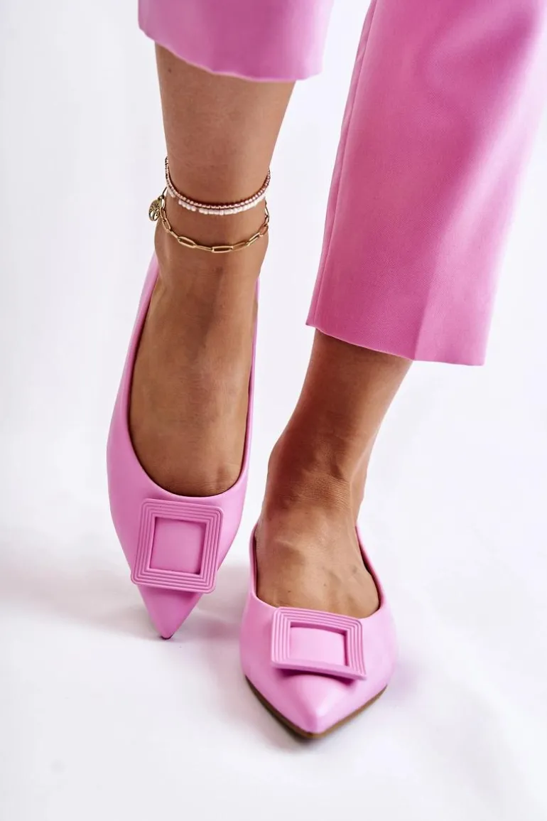 Modne baleriny z ozdobnym elementem z tworzywa sztucznego na przodzie. Buty wykonane są w całości z eko skóry. Miękka wkładka zadba o Twój komfort nawet podczas całodziennego użytkowania. Nosek w szpic. Baleriny dopełnią wiele letnich stylizacji. Osadzone na płaskim obcasie z antypoślizgową podeszwą. Koniecznie powinnaś sprawdzić także pozostałą kolekcję balerinek! Przy wyborze rozmiaru prosimy sugerować się tabelą rozmiarów.