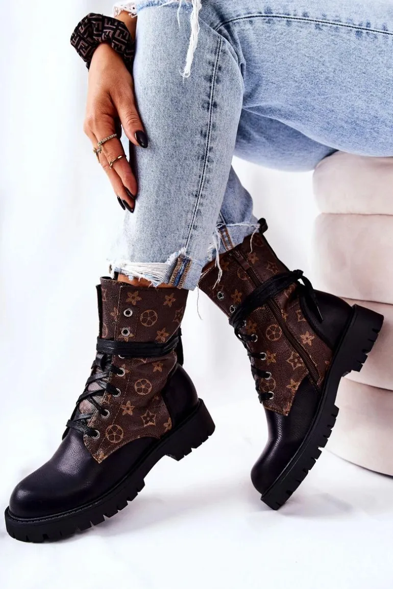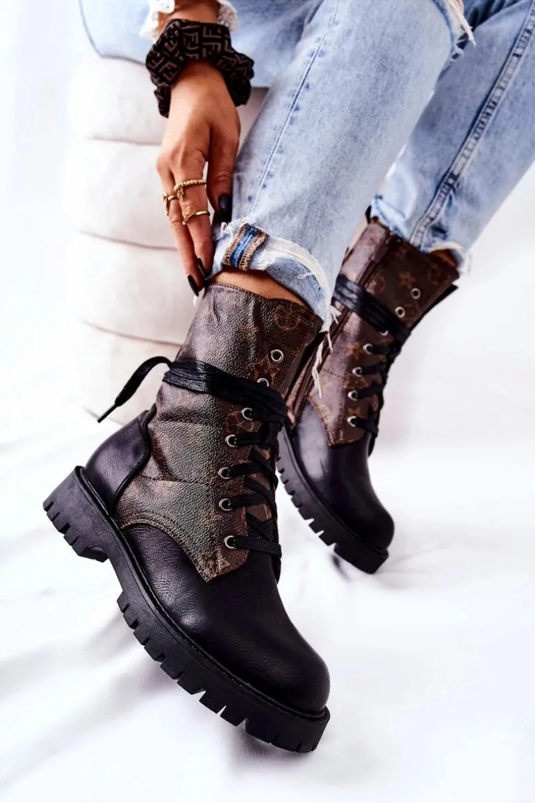 Wysokie botki zostały wykonane z eko skóry. Posiadają długie sznurówki, które można zawiązać wokół cholewki. Świetny model, który doda Twoim stylizacjom charakteru! Botki posiadają także suwak ułatwiający zakładanie obuwia. W środku są ocieplane delikatnym kocem obuwniczym.