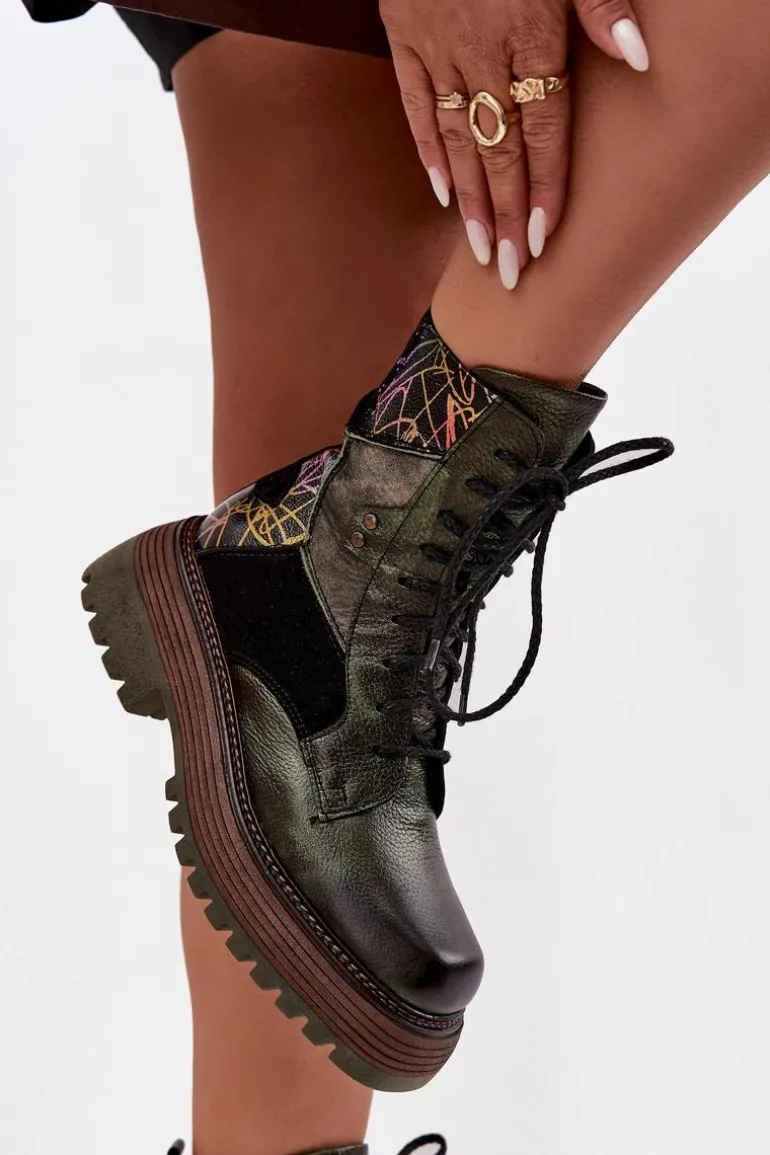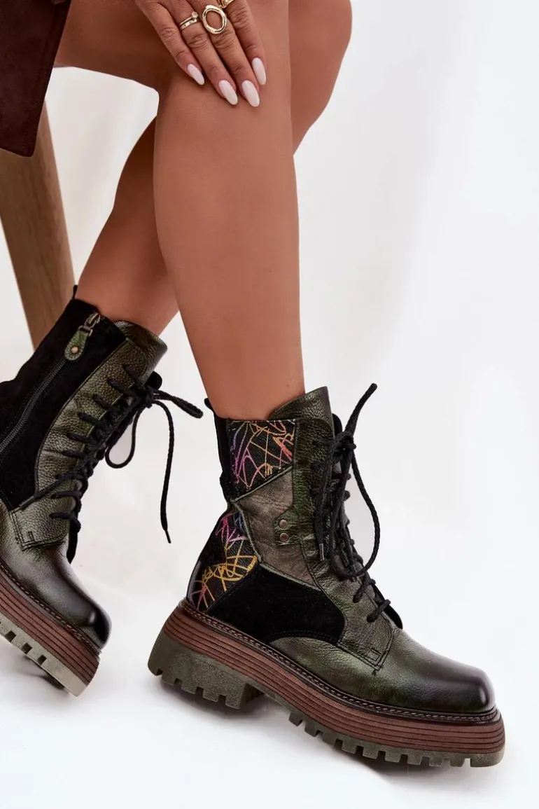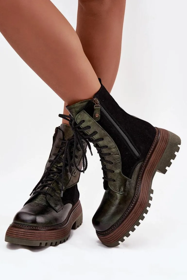 Botki damskie marki Maciejka to propozycja dla kobiet, które cenią sobie oryginalny styl i wygodę. Wykonane z wysokiej jakości naturalnej skóry, prezentują się elegancko i są wyjątkowo trwałe. Model osadzony został na solidnej platformie, która zapewnia stabilność oraz komfort podczas noszenia. Buty posiadają zarówno zapięcie na zamek, jak i klasyczne sznurowanie, co pozwala na idealne dopasowanie do stopy i wygodne zakładanie. Kwadratowe noski nadają całości nowoczesnego charakteru, podkreślając nietuzinkowy fason botków. Wnętrze zostało ocieplone miękkim, przyjemnym w dotyku materiałem, który gwarantuje komfort termiczny w chłodniejsze dni. To stylowe i oryginalne botki, które świetnie sprawdzą się w codziennych stylizacjach, dodając im wyrazistości i charakteru.
