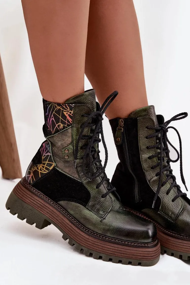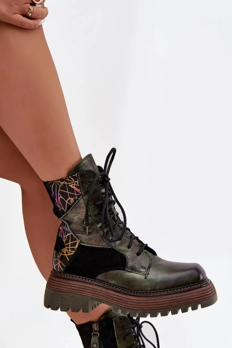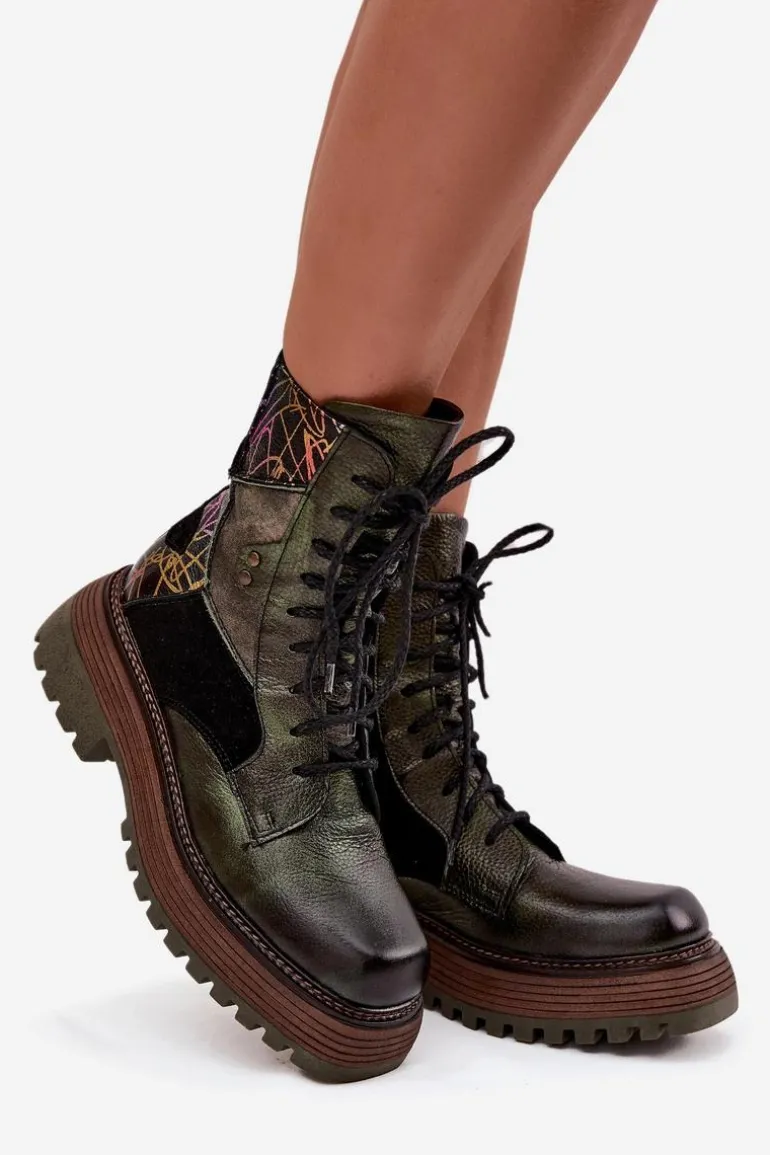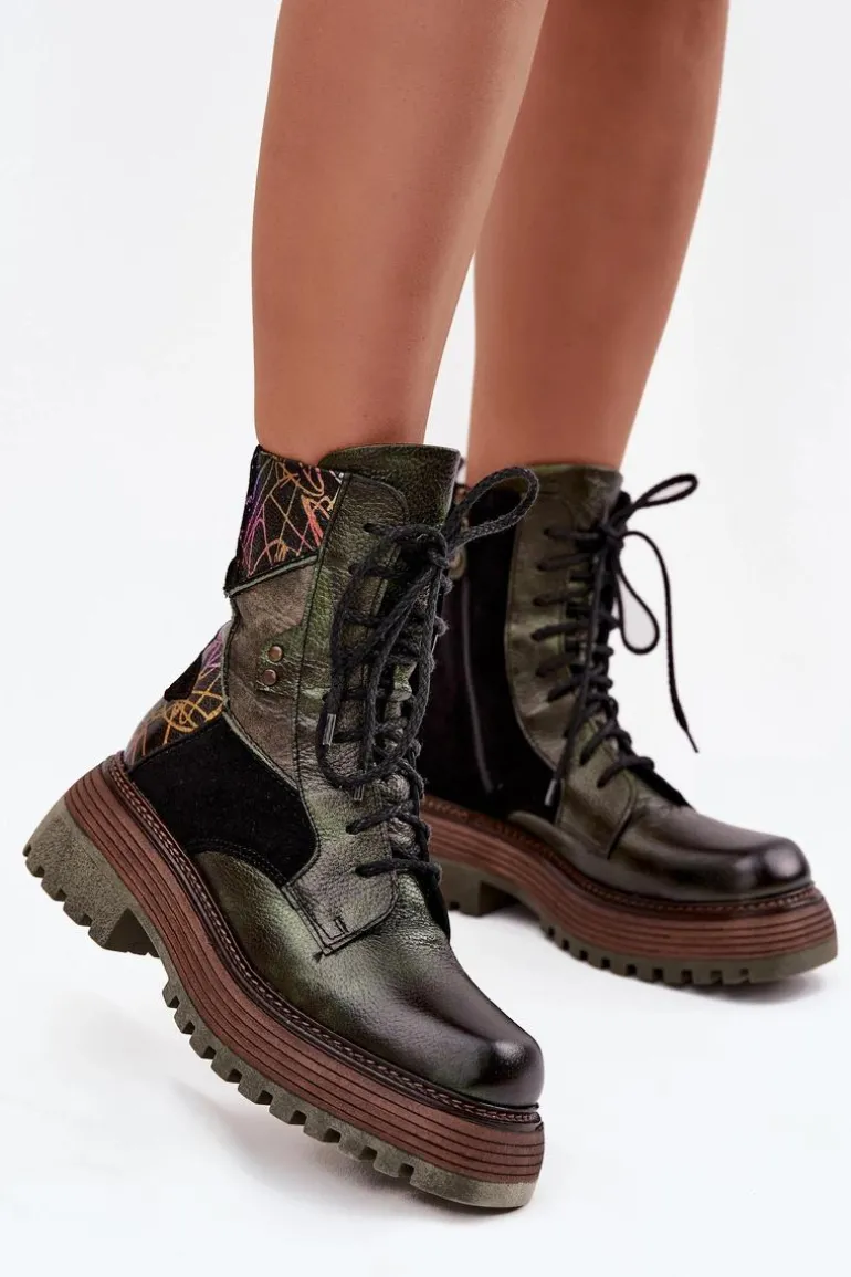 Botki damskie marki Maciejka to propozycja dla kobiet, które cenią sobie oryginalny styl i wygodę. Wykonane z wysokiej jakości naturalnej skóry, prezentują się elegancko i są wyjątkowo trwałe. Model osadzony został na solidnej platformie, która zapewnia stabilność oraz komfort podczas noszenia. Buty posiadają zarówno zapięcie na zamek, jak i klasyczne sznurowanie, co pozwala na idealne dopasowanie do stopy i wygodne zakładanie. Kwadratowe noski nadają całości nowoczesnego charakteru, podkreślając nietuzinkowy fason botków. Wnętrze zostało ocieplone miękkim, przyjemnym w dotyku materiałem, który gwarantuje komfort termiczny w chłodniejsze dni. To stylowe i oryginalne botki, które świetnie sprawdzą się w codziennych stylizacjach, dodając im wyrazistości i charakteru.