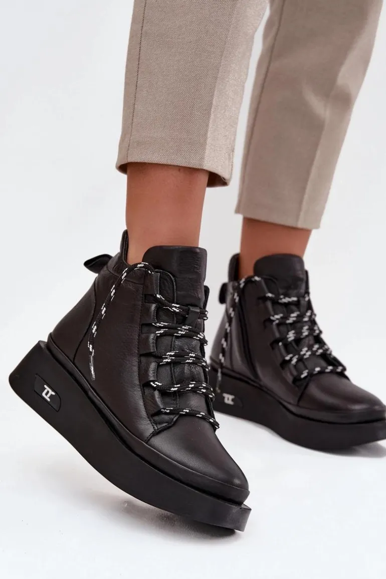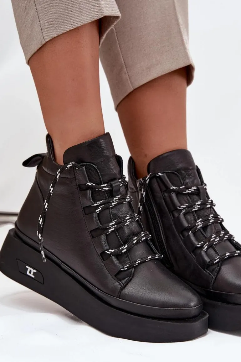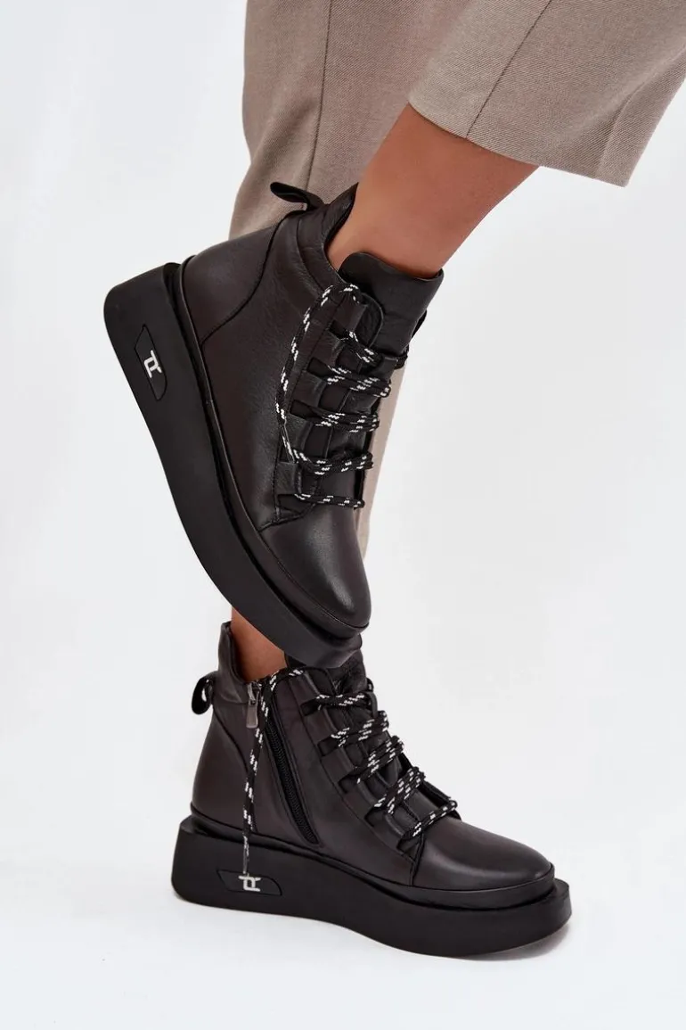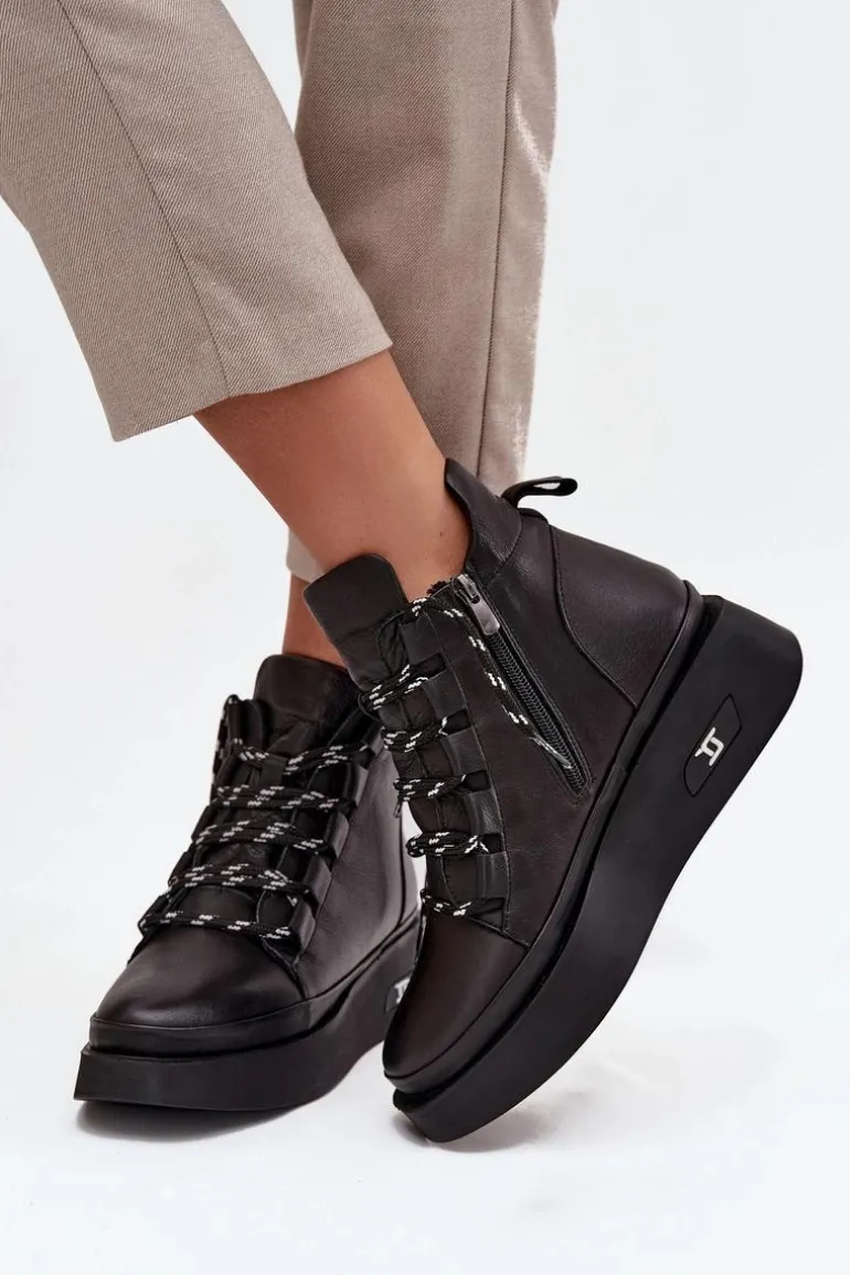 Botki damskie marki Artiker to propozycja dla kobiet ceniących styl i wygodę. Wykonane z naturalnej skóry, prezentują wysoką jakość i trwałość. Osadzone na stabilnej platformie, dodają charakteru i zapewniają komfort noszenia. Model posiada sznurowanie oraz praktyczny zamek, co ułatwia zakładanie i dopasowanie do stopy. Starannie wykonane detale podkreślają nowoczesny i modny wygląd obuwia. Przy wyborze rozmiaru prosimy sugerować się tabelą rozmiarów.