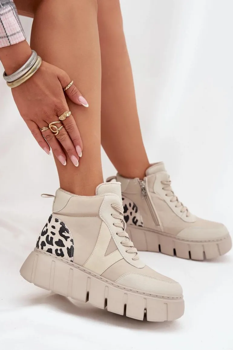 Botki damskie w sportowym stylu od Vinceza to połączenie wygody i miejskiego designu. Wykonane z naturalnej skóry, osadzone na lekkiej platformie, zapewniają stabilny krok bez dodatkowego obciążenia. Model łączy funkcjonalność – sznurowanie pozwala na idealne dopasowanie do stopy, a zamek ułatwia szybkie zakładanie. Doskonałe na co dzień, gdy zależy Ci na wygodzie i modnym, casualowym looku. Przy wyborze rozmiaru prosimy sugerować się tabelą rozmiarów.