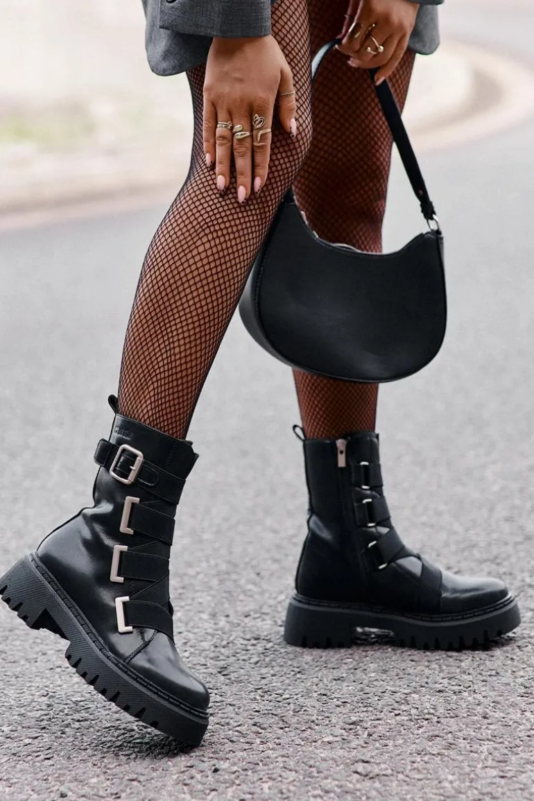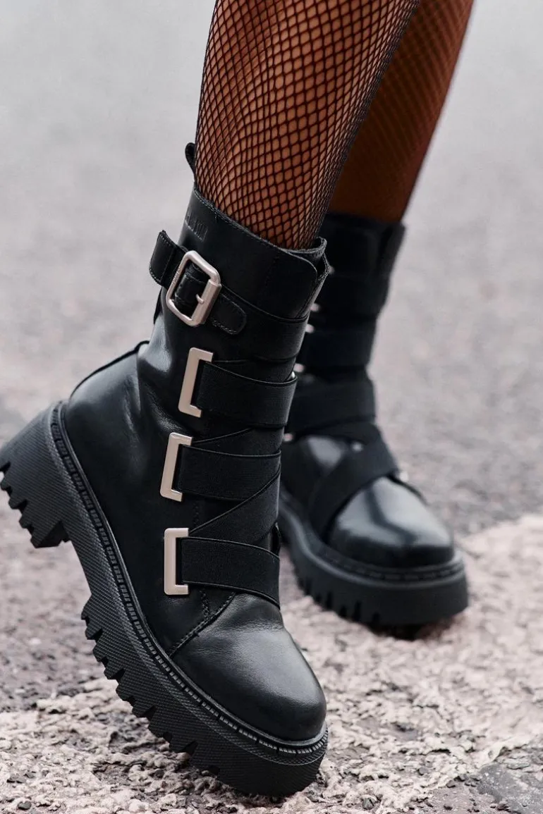 Botki od marki Big Star. Wykonane ze skóry naturalnej. Osadzone na grubej podeszwie i płaskim obcasie. Noski zaokrąglone. Środek ocieplany kocem obuwniczym, co zapewni ciepło w mroźne dni. Noski zaokrąglone. Cholewka ozdobiona paskami. Zapinane na zamek. Model ten idealnie dopełni wiele jesienno-zimowych stylizacji! Przy wyborze rozmiaru prosimy sugerować się tabelą rozmiarów.