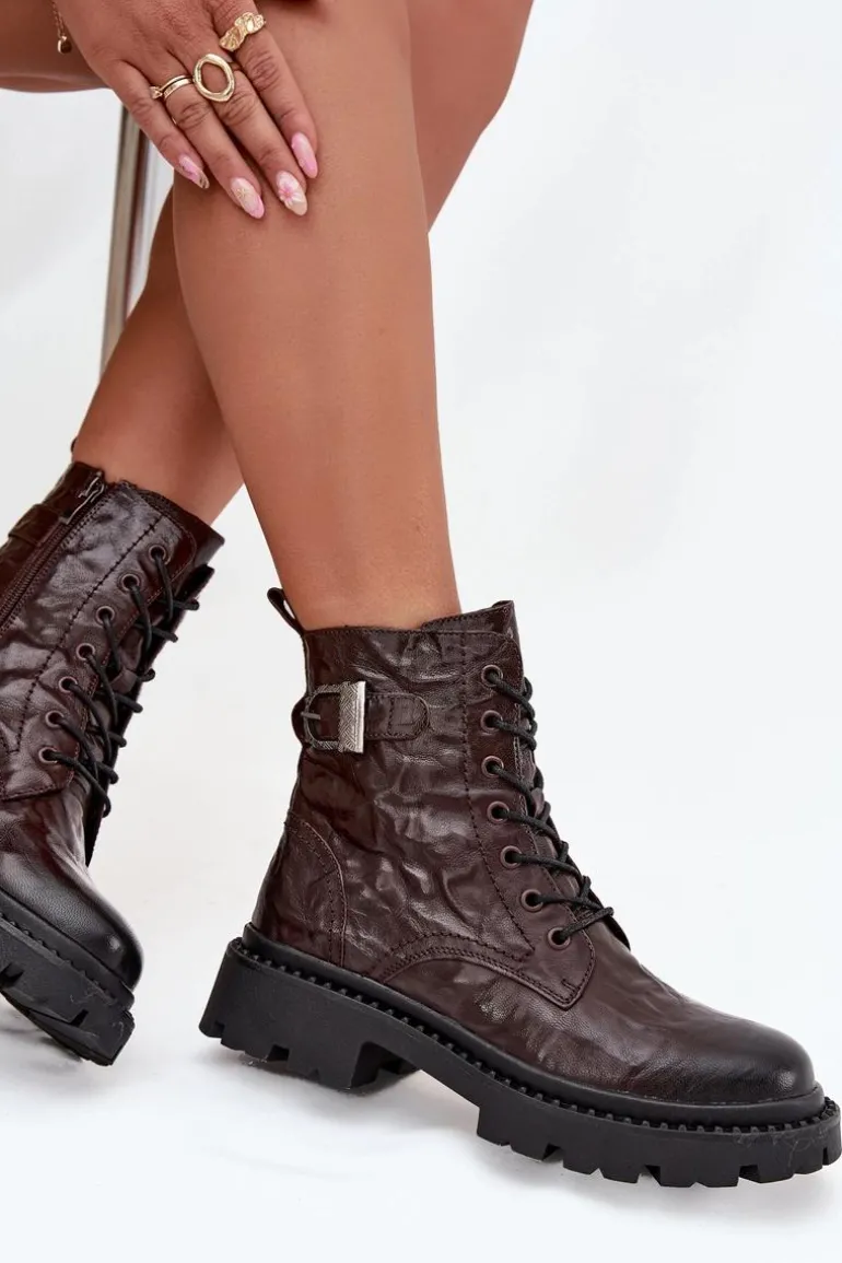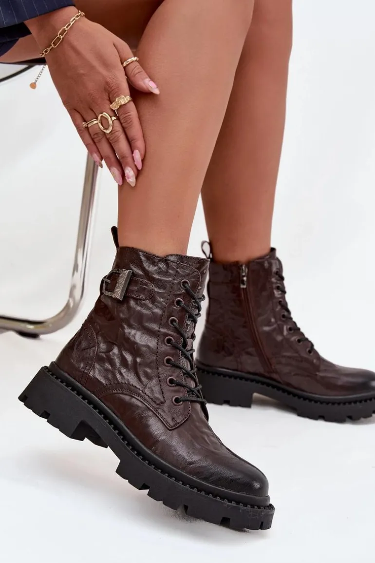 Botki damskie marki Artiker wykonane z naturalnej skóry to propozycja, która łączy elegancję z nowoczesnym wyglądem. Cholewka zdobiona efektem gniecenia nadaje obuwiu oryginalnego charakteru i sprawia, że buty wyróżniają się na tle klasycznych modeli. Dodatkowym atutem jest ozdobna klamra umieszczona w górnej części cholewki, która podkreśla wyjątkowy styl. Model zapinany na zamek jest praktyczny i wygodny w codziennym użytkowaniu, a ocieplane wnętrze gwarantuje komfort oraz ciepło w chłodniejsze dni. To botki, które świetnie sprawdzą się zarówno w codziennych stylizacjach, jak i przy bardziej eleganckich wyjściach. Przy wyborze rozmiaru prosimy sugerować się tabelą rozmiarów.
