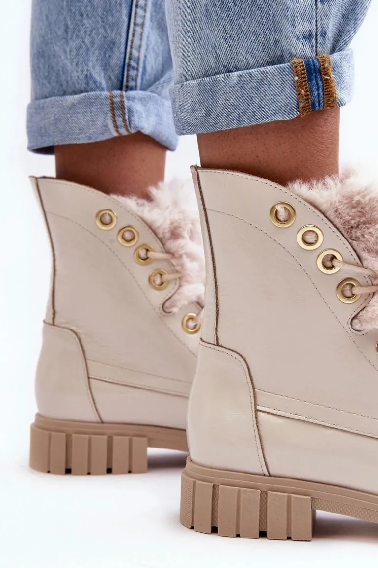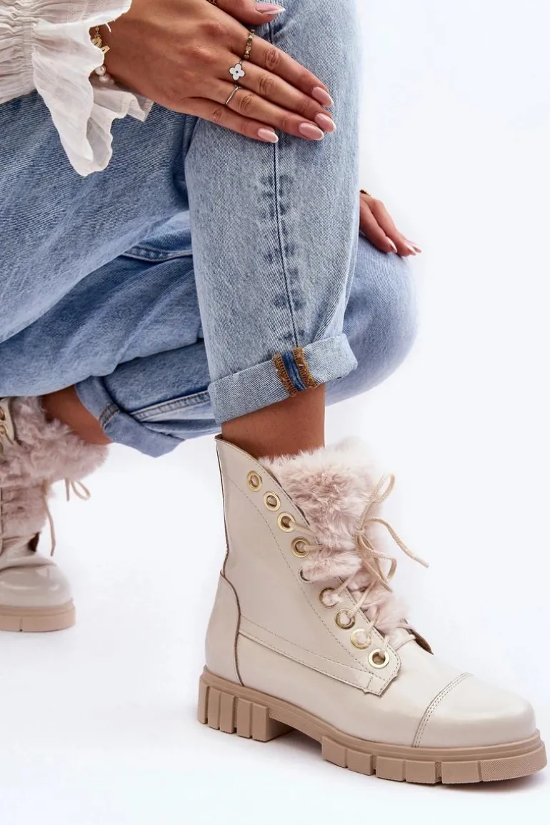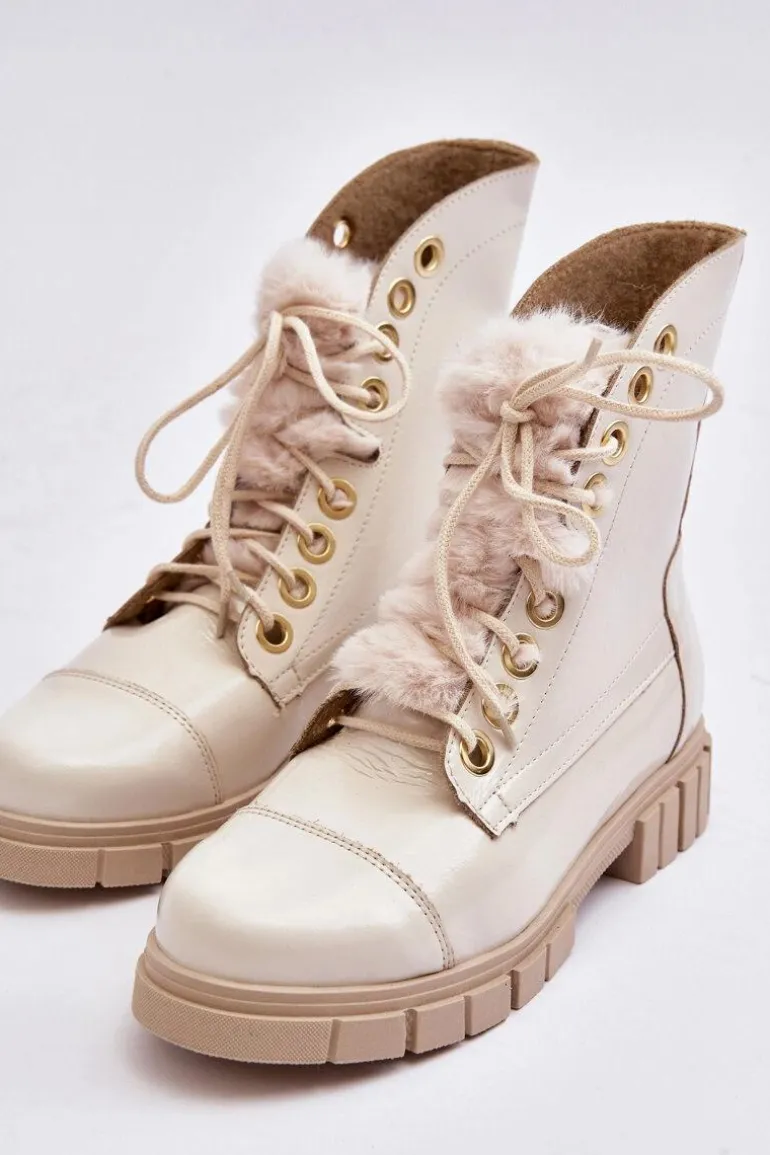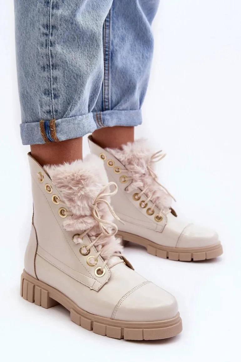 Klasyczne botki damskie zostały wykonane z wysokiej jakości naturalnych skór. Osadzone na płaskim obcasie i platformie. Model klasycznie sznurowany. Z przodu ozdobne, grube futerko. Zapiętek jest usztywniony. Skórzane botki doskonale sprawdzą się w wielu wiosennych stylizacjach. Musisz je mieć w swojej szafie! Przy wyborze rozmiaru prosimy sugerować się tabelą rozmiarów.