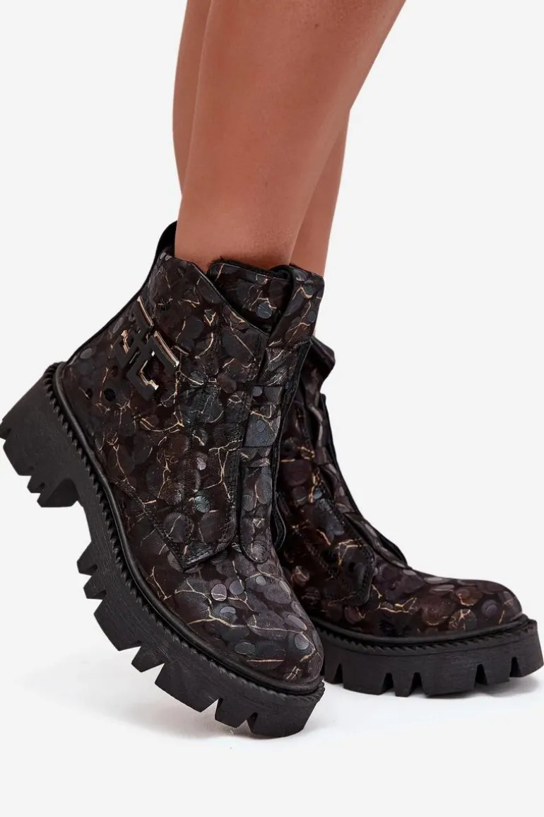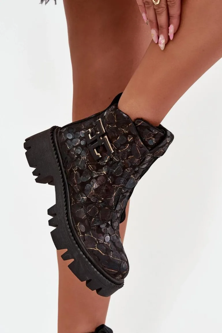 Botki damskie marki Artiker wykonane z naturalnej skóry to propozycja łącząca elegancję z wygodą. Stylowe wykończenie i dbałość o detale nadają im wyjątkowego charakteru, a ozdoba umieszczona z boku cholewki podkreśla modny wygląd. Model zapinany na zamek jest praktyczny i wygodny w codziennym użytkowaniu. Wnętrze ocieplone kocem obuwniczym zapewnia komfort i ciepło w chłodniejsze dni. Przy wyborze rozmiaru prosimy sugerować się tabelą rozmiarów.