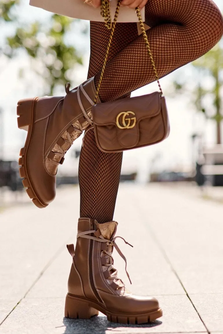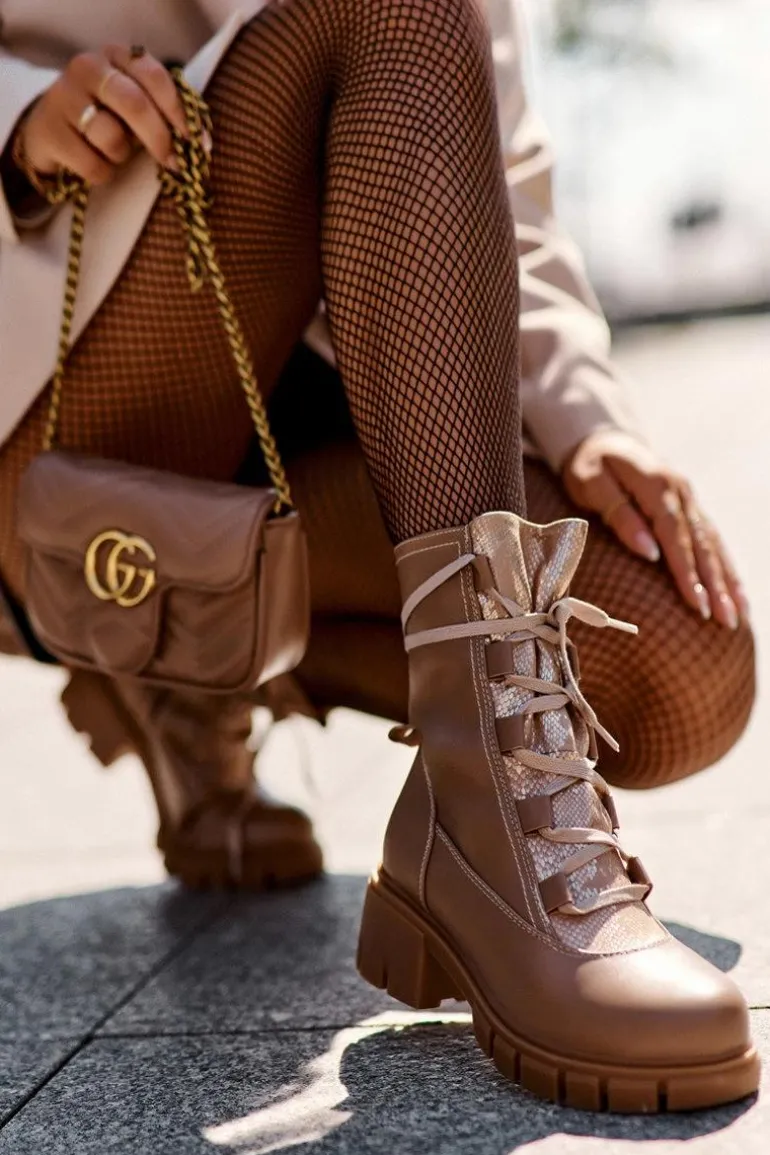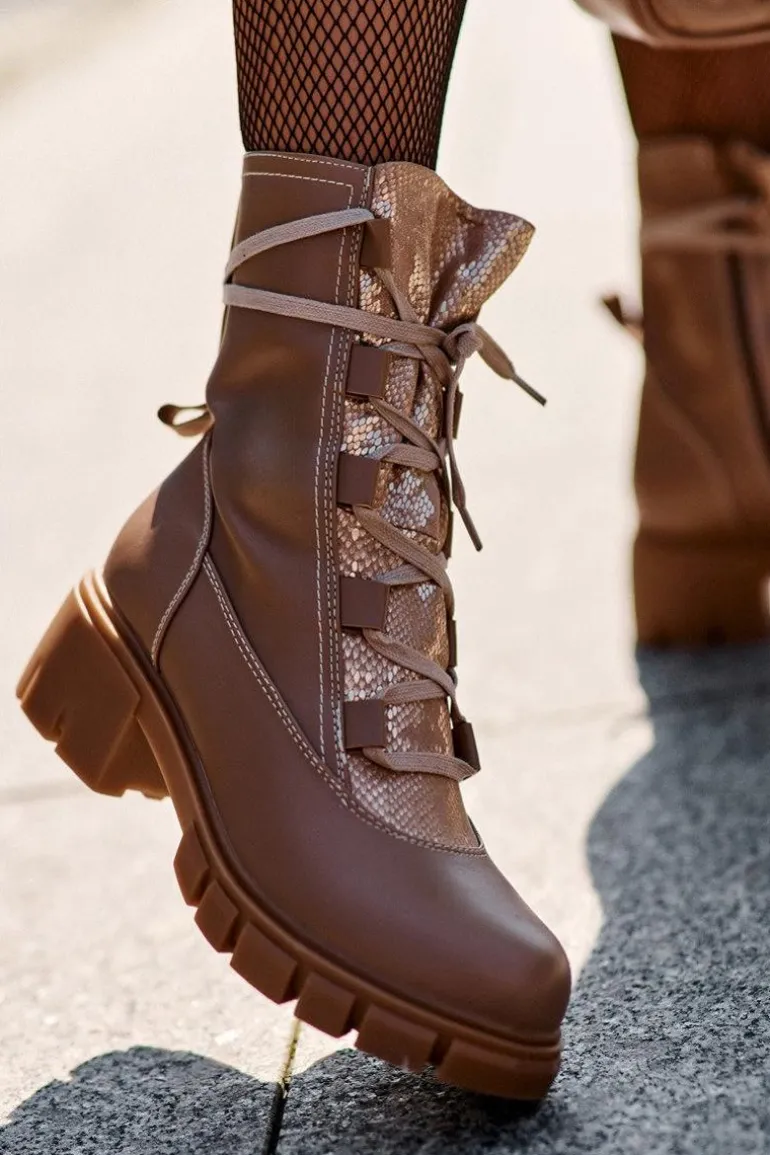 Botki wykonane z eko skóry. Zapinane na suwak z boku cholewki oraz dodatkowo posiadają ozdobne sznurowanie. Ocieplane w środku kocem obuwniczym. Osadzone na płaskim, stabilnym obcasie. Będziesz w nich wyglądać bardzo stylowo, dlatego nie czekaj i kup już dziś! Przy wyborze rozmiaru prosimy sugerować się tabelą rozmiarów.