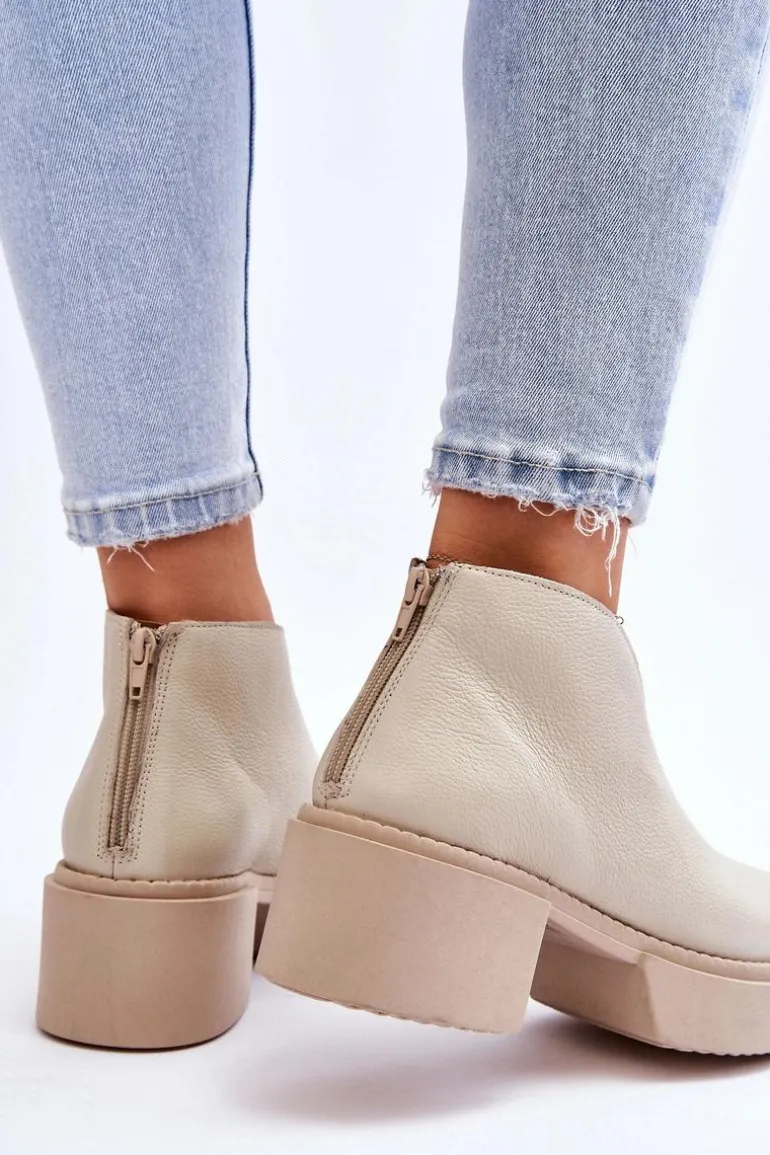 Skórzane Botki Na Masywnym Obcasie Nicole 2795/054 Jasnobeżowe