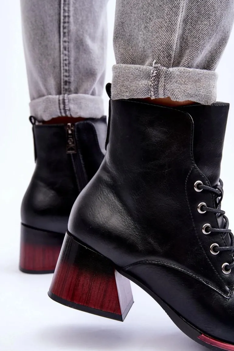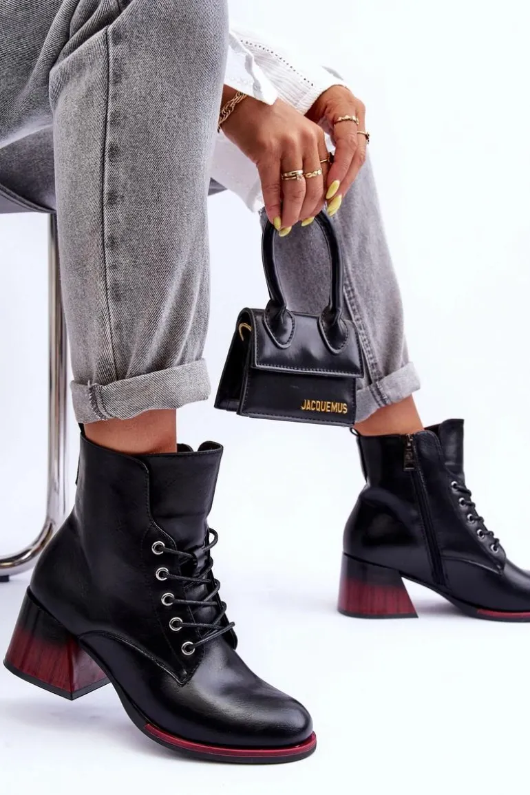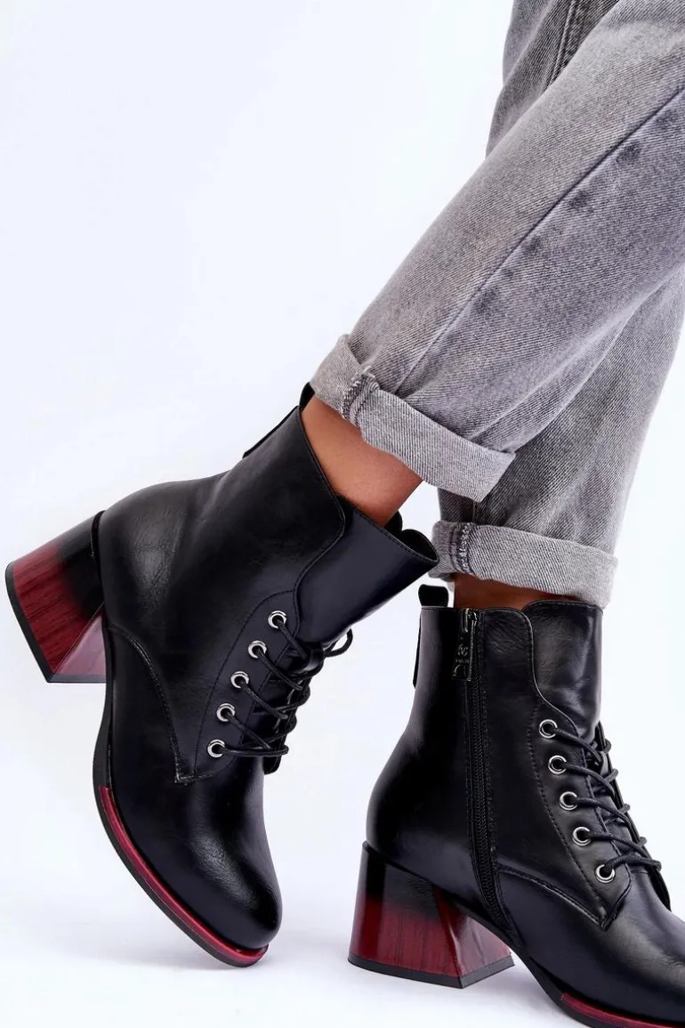 Stylowe botki damskie z cholewką za kostkę. Osadzone na platformie i obcasie. Wykonane z eko skóry. Posiadają zapinanie na suwak oraz dodatkowe sznurowanie. Miękka wkładka zapewni komfortowe użytkowanie obuwia. Zapiętek w tym obuwiu jest usztywniany. Botki będą świetnym uzupełnieniem wielu stylizacji! Przy wyborze rozmiaru prosimy sugerować się tabelą rozmiarów.
