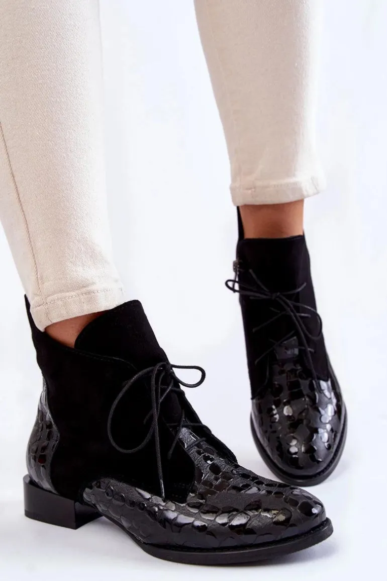 Modne botki damskie wykonane ze skór wysokiej jakości z dbałością o szczegóły. Osadzone na płaskim obcasie. Botki sznurowane z dodatkowym suwakiem. Niezwykły fason dodatkowo posiada usztywniany zapiętek. Wewnątrz zostały ocieplone kocem obuwniczym. Koniecznie sprawdź także pozostałe modele botków od marki Maciejka! Przy wyborze rozmiaru prosimy sugerować się tabelą rozmiarów.