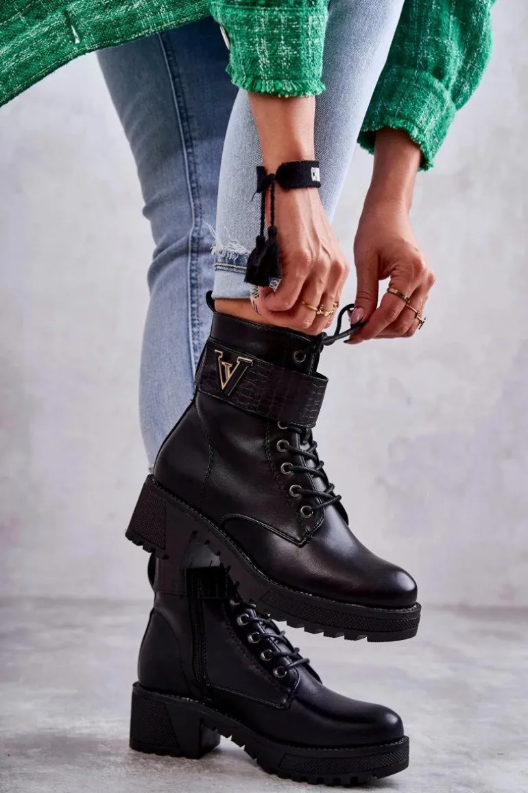 Ocieplane botki – workery świetnie sprawdzą podczas sezonu jesiennego. Zostały wykonane z eko skóry. Posiadają usztywniany zapiętek. Model z klasycznym wiązaniem oraz suwakiem z boku cholewki. Dodatkowo posiadają pasek na rzep z emblematem. Osadzone na platformie z płaskim obcasem. W środku znajduje się koc obuwniczy, który świetnie ochroni przed zimnem. Przy wyborze rozmiaru prosimy sugerować się tabelą rozmiarów.