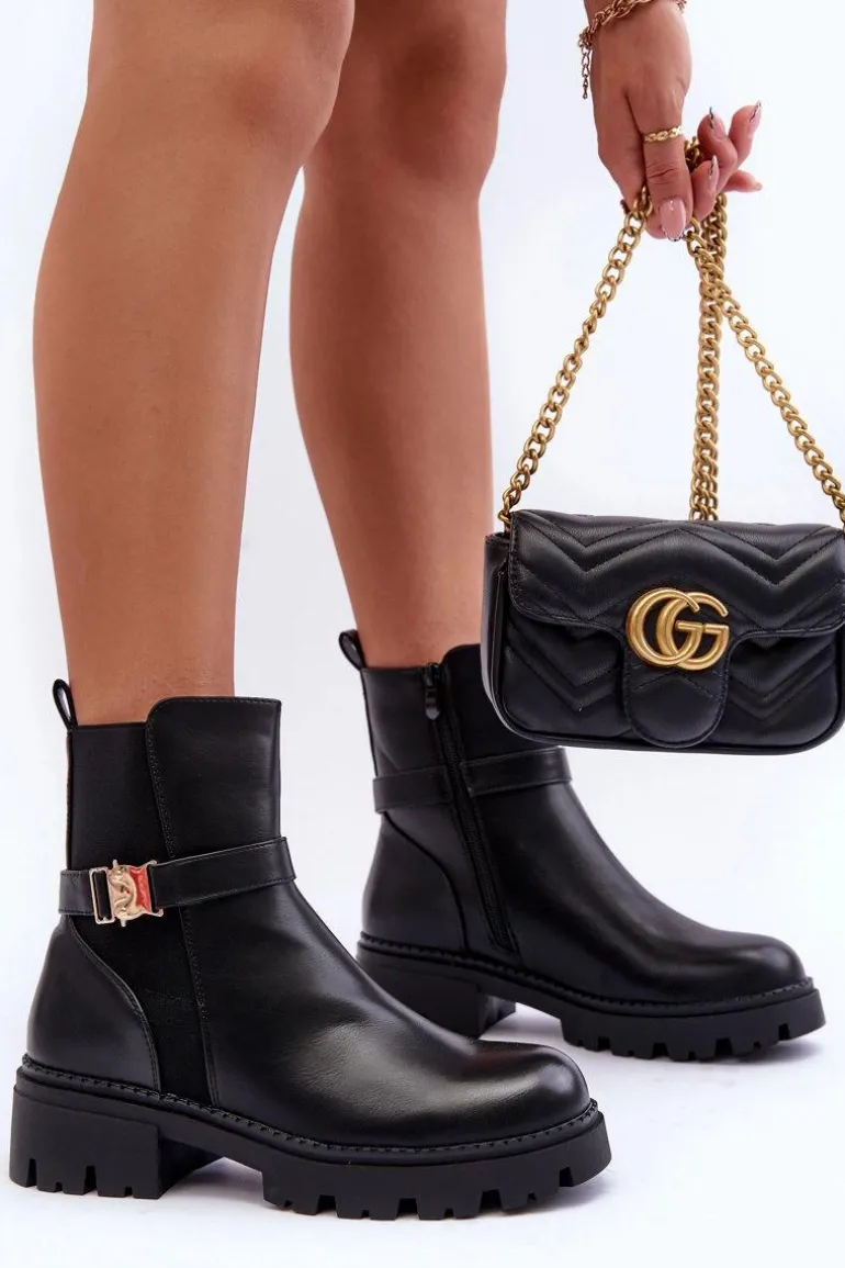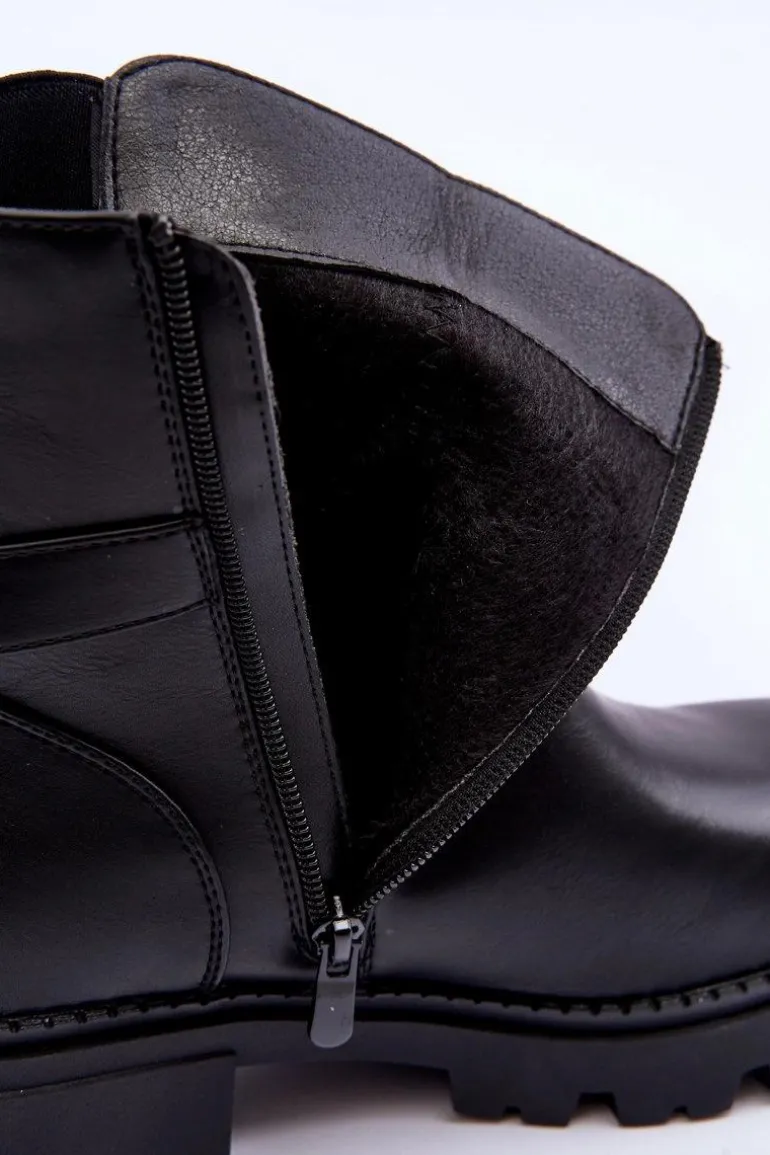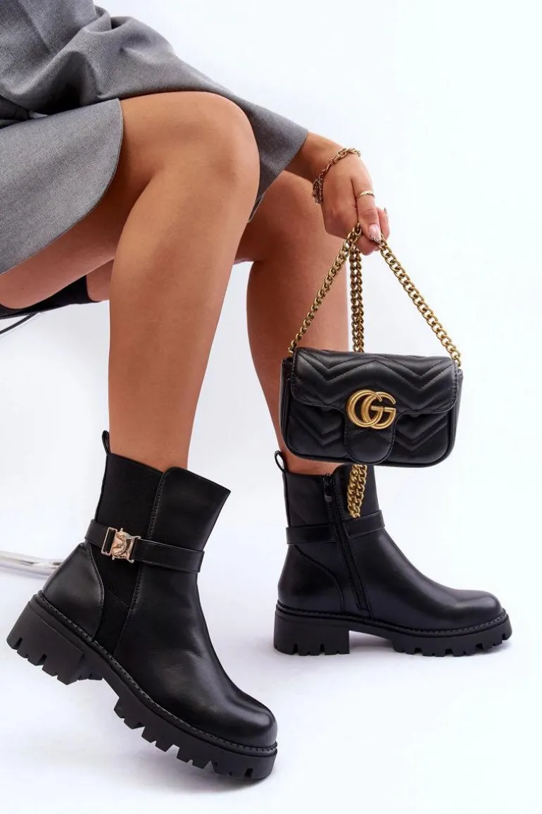 Klasyczne damskie sztyblety zostały wykonane z eko skóry. Zapinane na suwak z boku buta. Wewnątrz ocieplone kocem obuwniczym. Na cholewce znajduje się pasek z ozdobą. Model ten osadzony jest masywnej platformie i płaskim obcasie. Zapiętek jest usztywniony. Buty te świetnie sprawdzą się w sezonie wiosenno-jesiennym. Przy wyborze rozmiaru prosimy sugerować się tabelą rozmiarów.