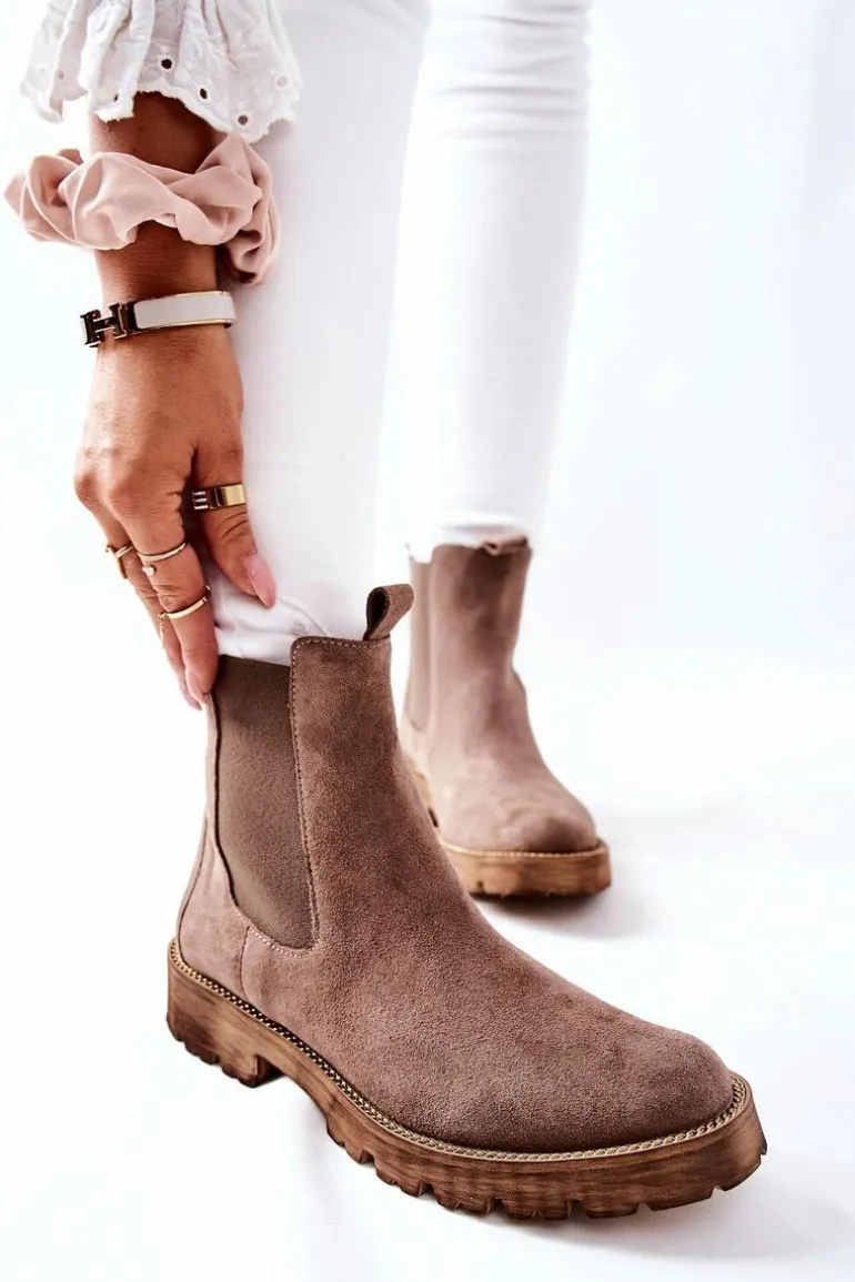 Damskie botki firmy Nicole, wykonane w całości ze skóry naturalnej. Przyjemny i wygodny zamsz zapewni wyjątkowy komfort, a wszyste gumy w cholewce ułatwią zakładanie. Miękka, antypoślizgowa podeszwa. Przy wyborze rozmiaru prosimy sugerować się tabelą rozmiarów.