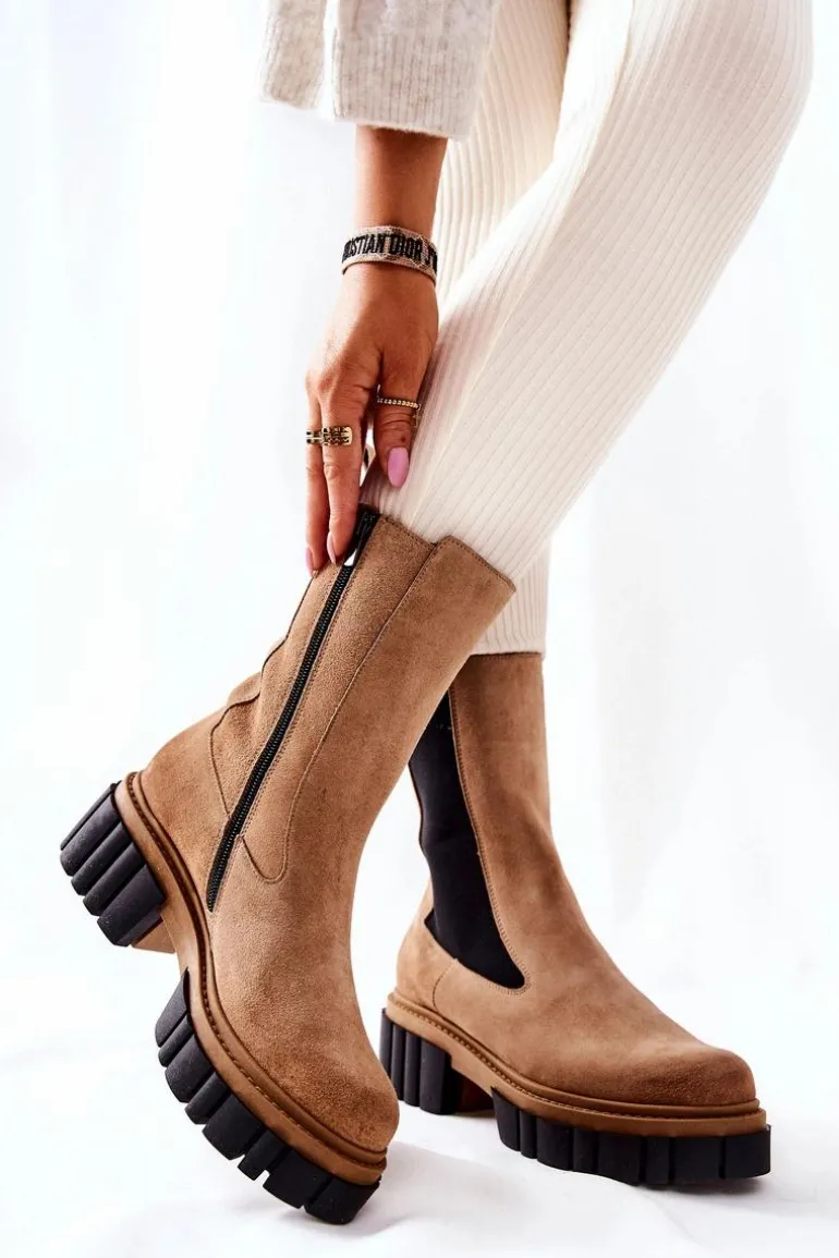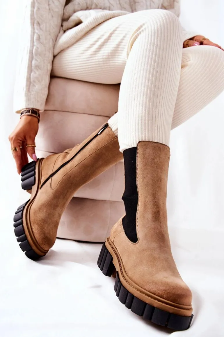 Skórzane Botki Workery Laura Messi Beżowe 2421