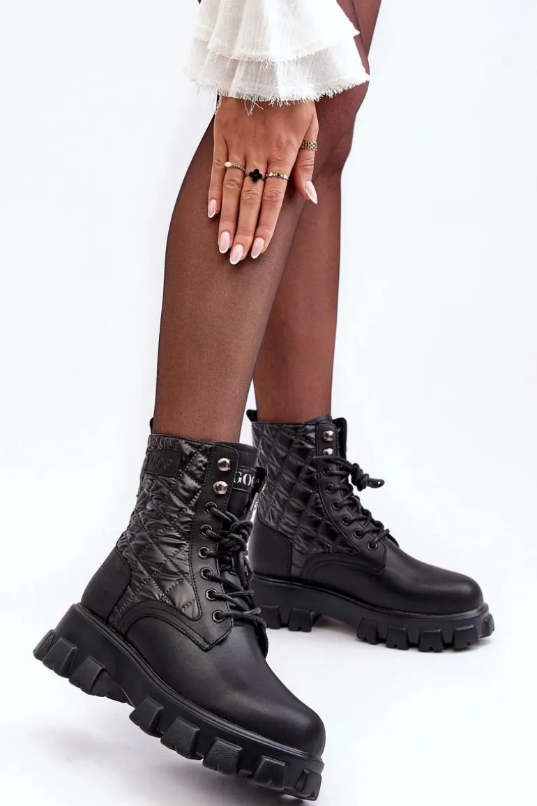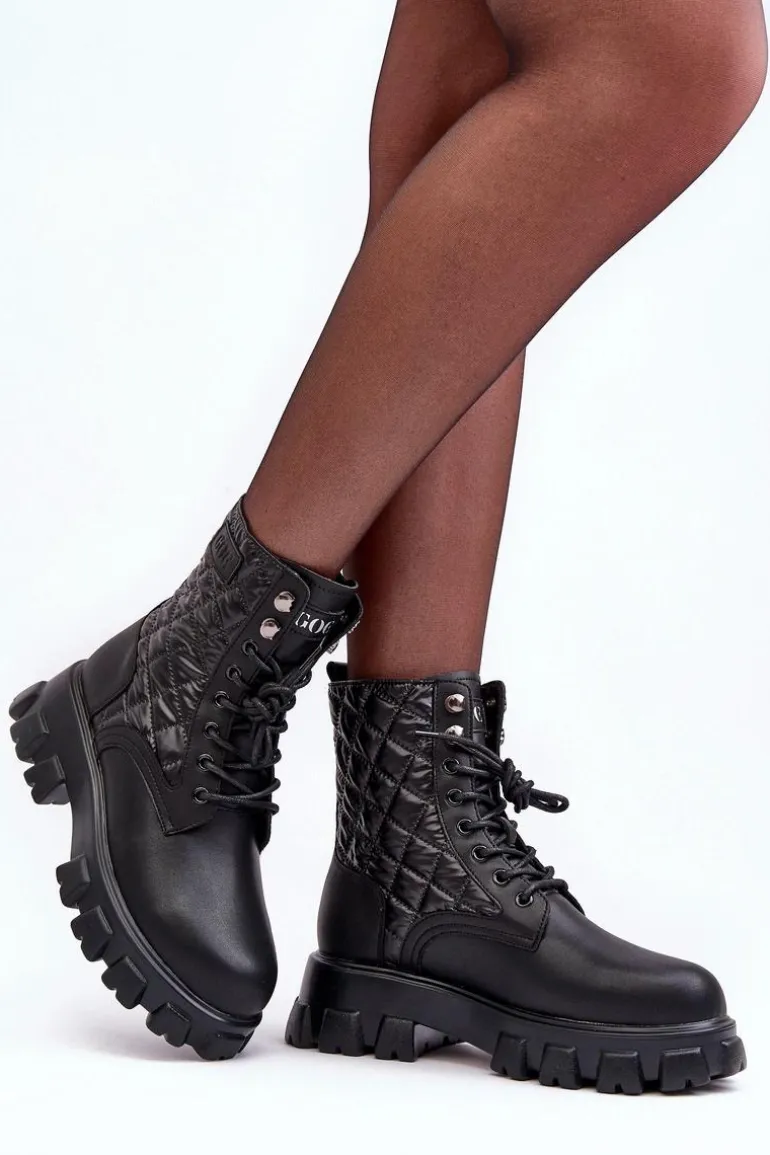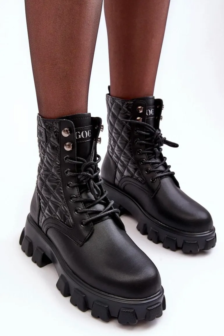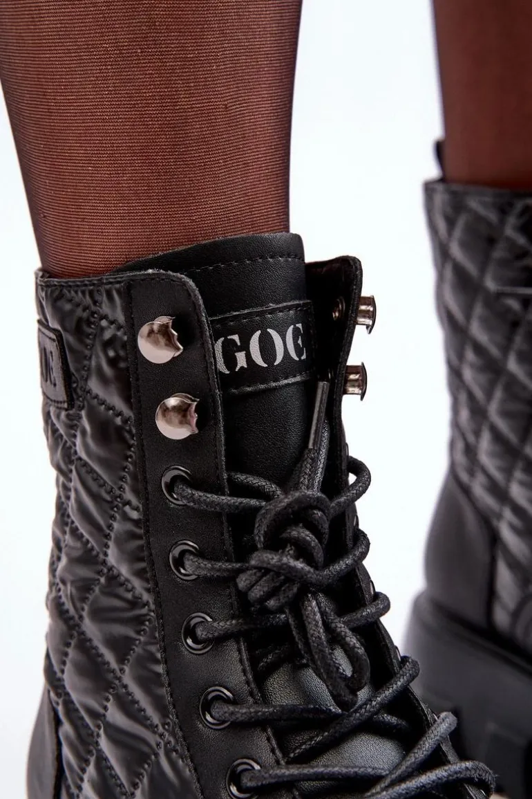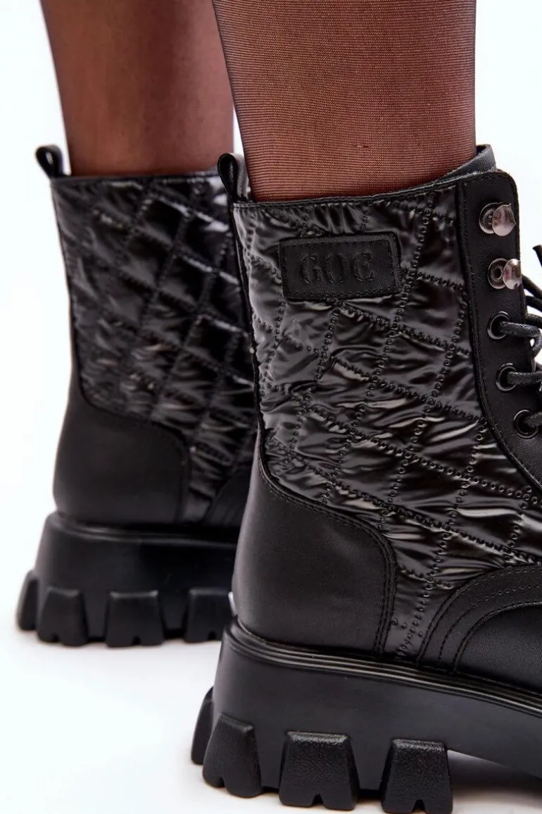 Botki damskie od marki GOE. Wykonane z wysokiej jakości skóry naturalnej. Osadzone na masywnym, płaskim obcasie i platformie. Model wsuwany z klasycznym sznurowaniem. Środek ocieplony kocem obuwniczym. Noski zaokrąglone. Usztywniony zapiętek. Klasyczny model, który wykorzystasz do wielu jesienno-zimowych stylizacji! Przy wyborze rozmiaru prosimy kierować się tabelą rozmiarów