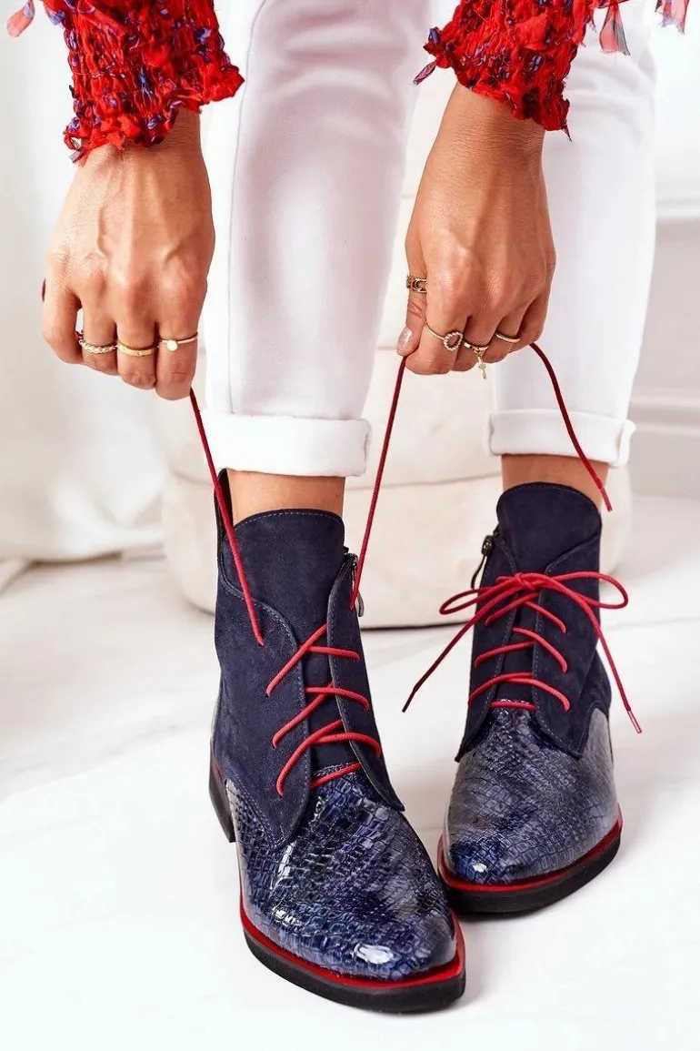 Wyjątkowe botki od polskiego producenta. Buty cechuje wysoka jakość wykonania oraz dbałość o detale. Botki wykonano ręcznie z lakierowanej skóry naturalnej oraz zamszu Skórzana wkładka, oraz wygodny obcas zapewnią maksymalny komfort! Dzięki pięknie zdobionej cholewce buty wzbogacą wszystkie Twoje stylizacje. Przy wyborze rozmiaru prosimy sugerować się tabelą rozmiarów.