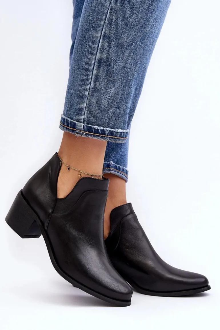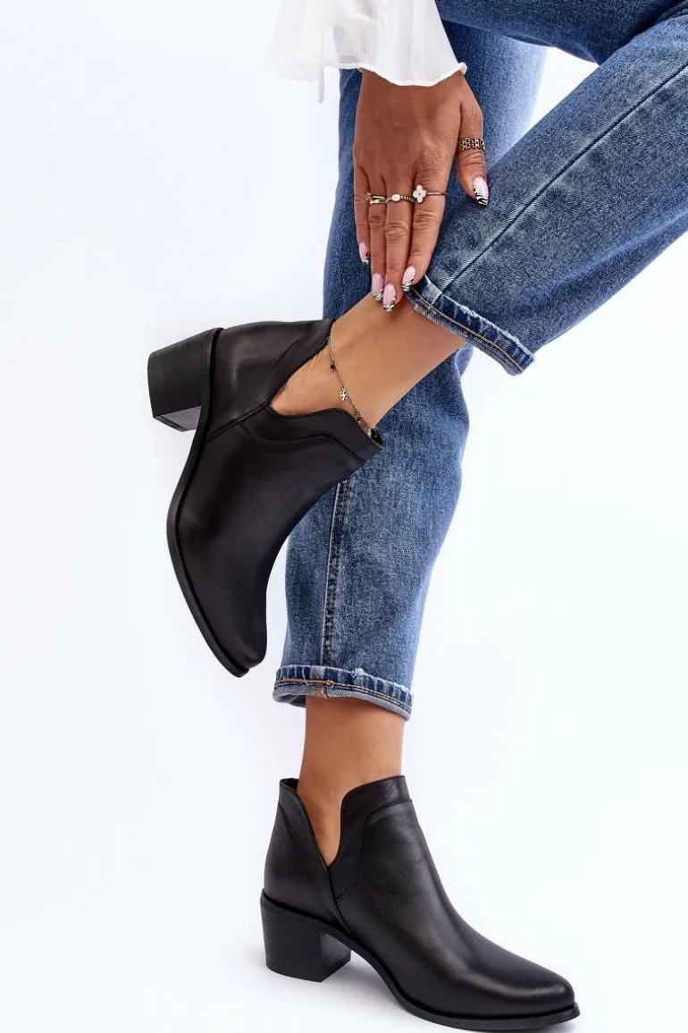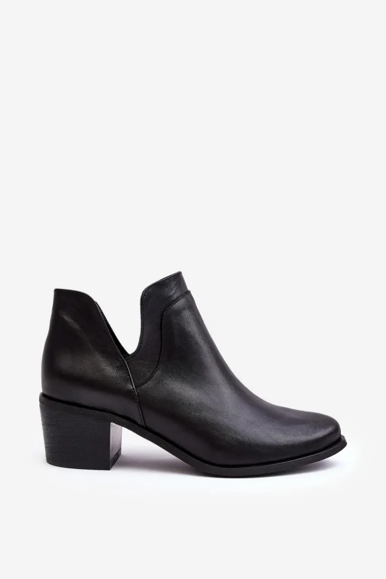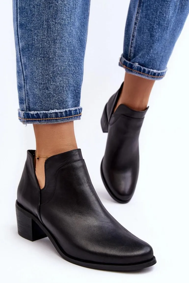 Damskie, wsuwane botki zostały wykonane z wysokiej jakości naturalnych skór. Model z modnymi wycięciami po bokach cholewki. Miękka wkładka zapewni komfort podczas użytkowania. Dodatkowo zapiętek jest usztywniany. Osadzone na niskim obcasie w postaci klocka. Te botki świetnie sprawdzą się w wielu stylizacjach! Powinnaś mieć je w swojej szafie! Przy wyborze rozmiaru prosimy sugerować się tabelą rozmiarów.