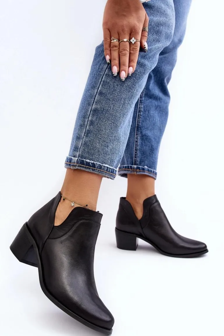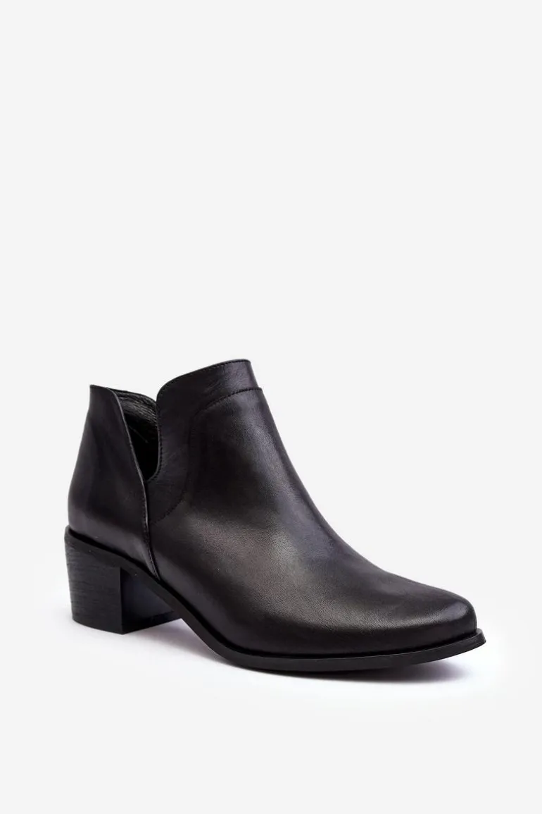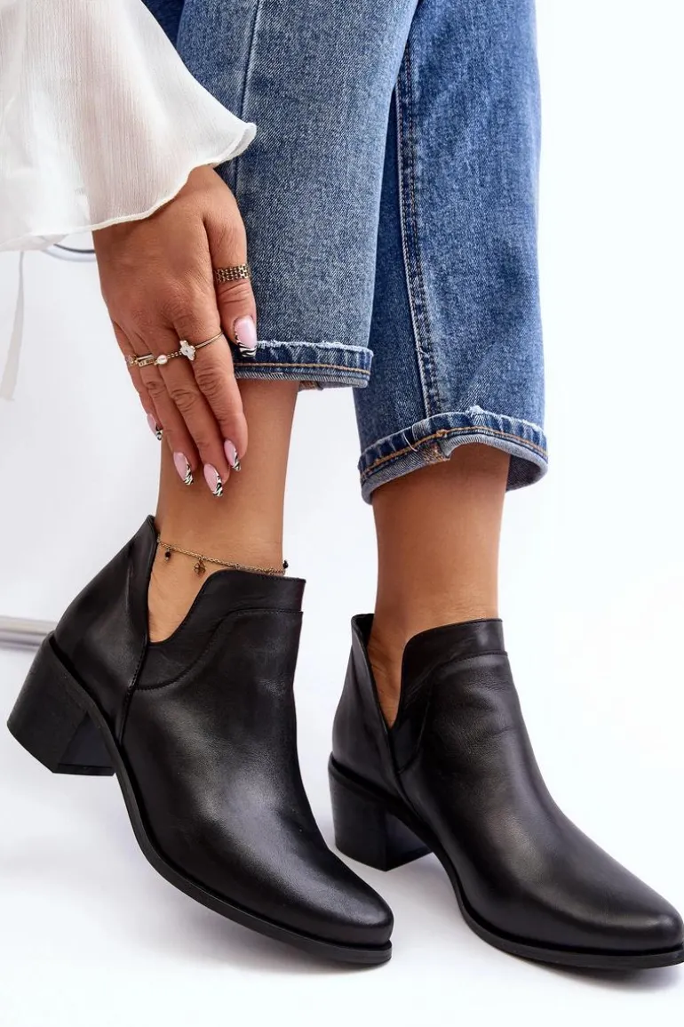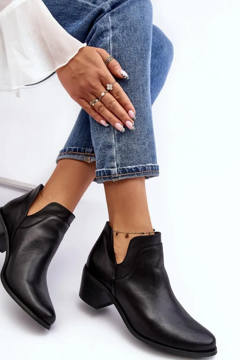 Damskie, wsuwane botki zostały wykonane z wysokiej jakości naturalnych skór. Model z modnymi wycięciami po bokach cholewki. Miękka wkładka zapewni komfort podczas użytkowania. Dodatkowo zapiętek jest usztywniany. Osadzone na niskim obcasie w postaci klocka. Te botki świetnie sprawdzą się w wielu stylizacjach! Powinnaś mieć je w swojej szafie! Przy wyborze rozmiaru prosimy sugerować się tabelą rozmiarów.