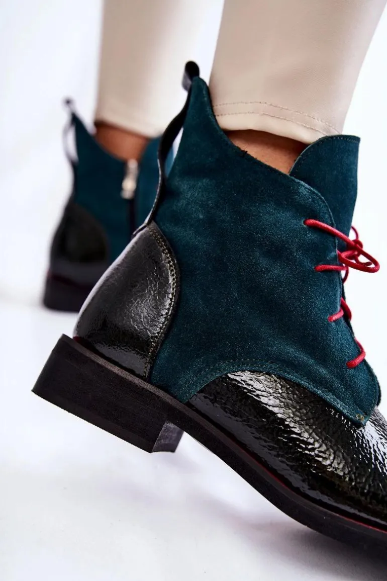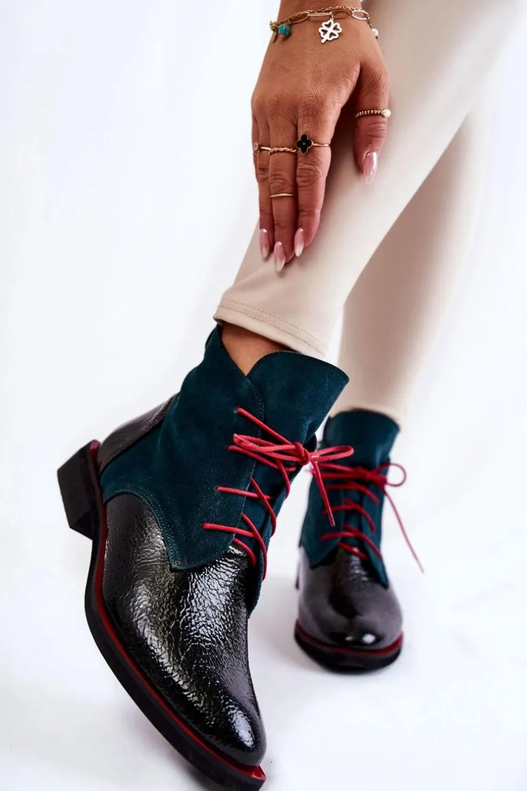 Wyjątkowe botki od polskiego producenta. Buty cechuje wysoka jakość wykonania oraz dbałość o detale. Botki wykonano ręcznie z lakierowanej skóry naturalnej oraz zamszu Skórzana wkładka, oraz wygodny obcas zapewnią maksymalny komfort! Dzięki pięknie zdobionej cholewce buty wzbogacą wszystkie Twoje stylizacje. Przy wyborze rozmiaru prosimy sugerować się tabelą rozmiarów.