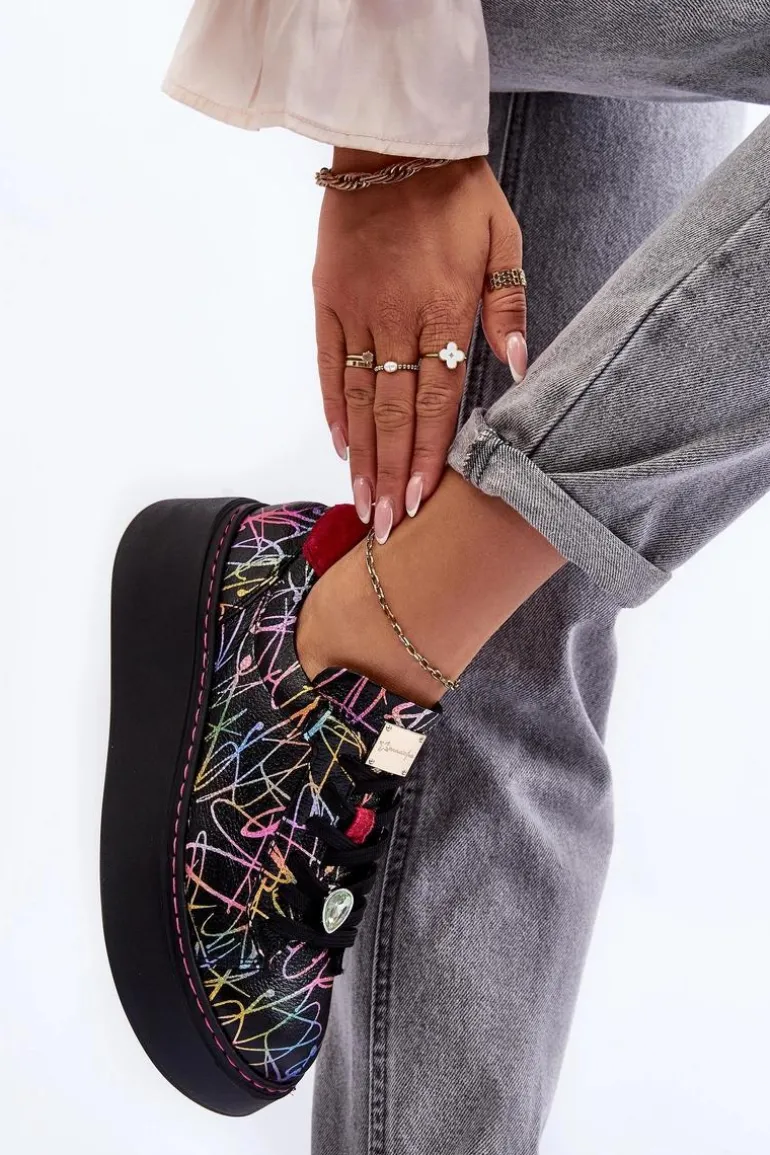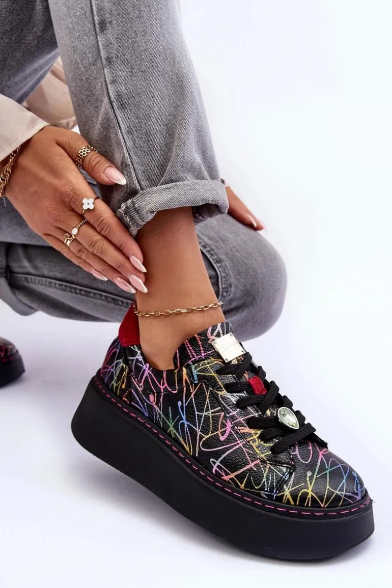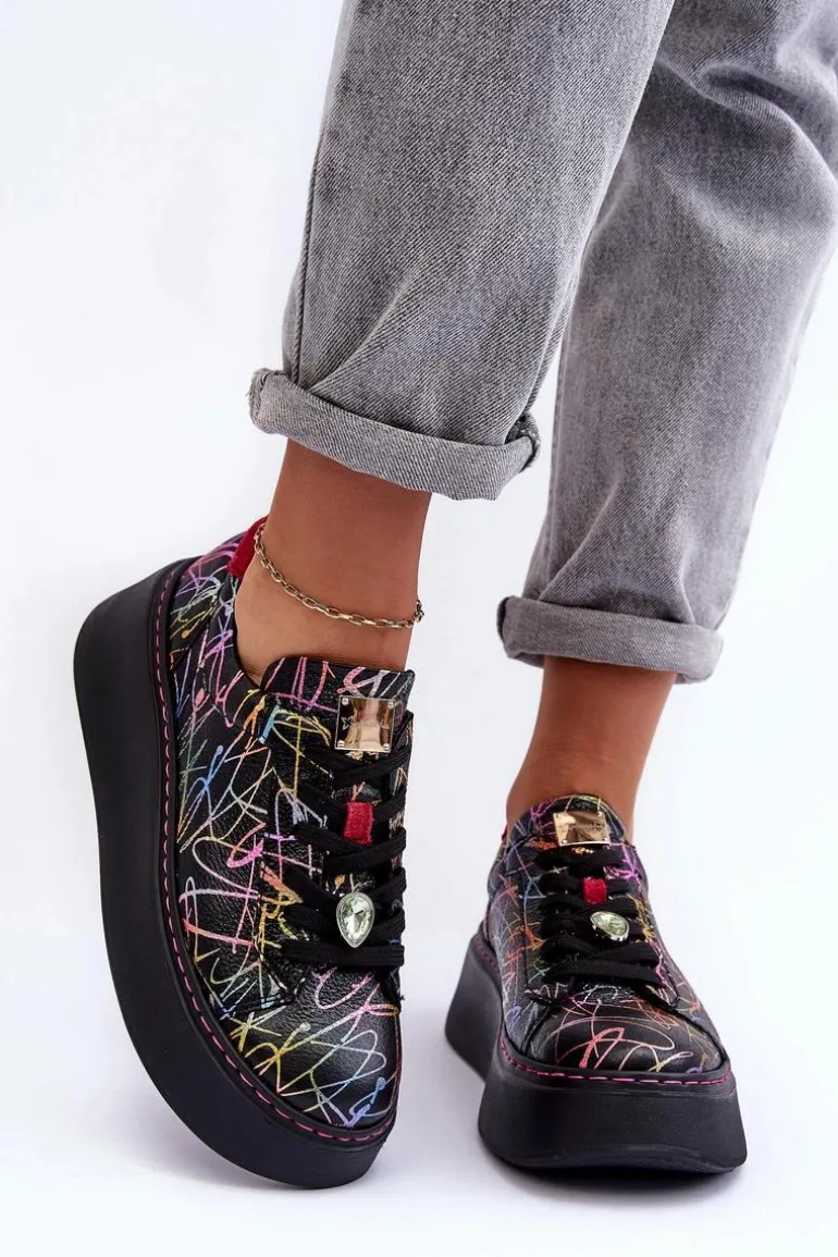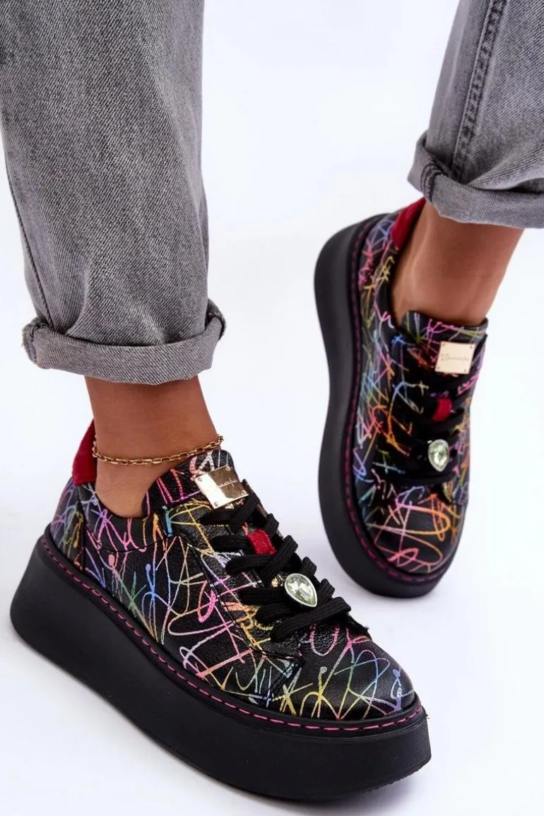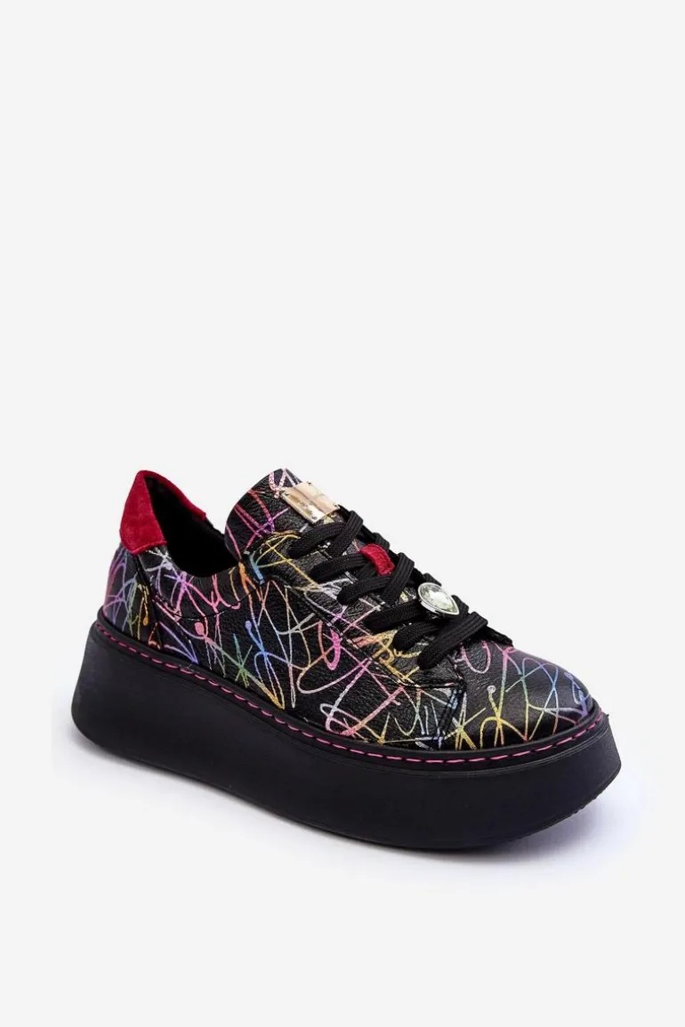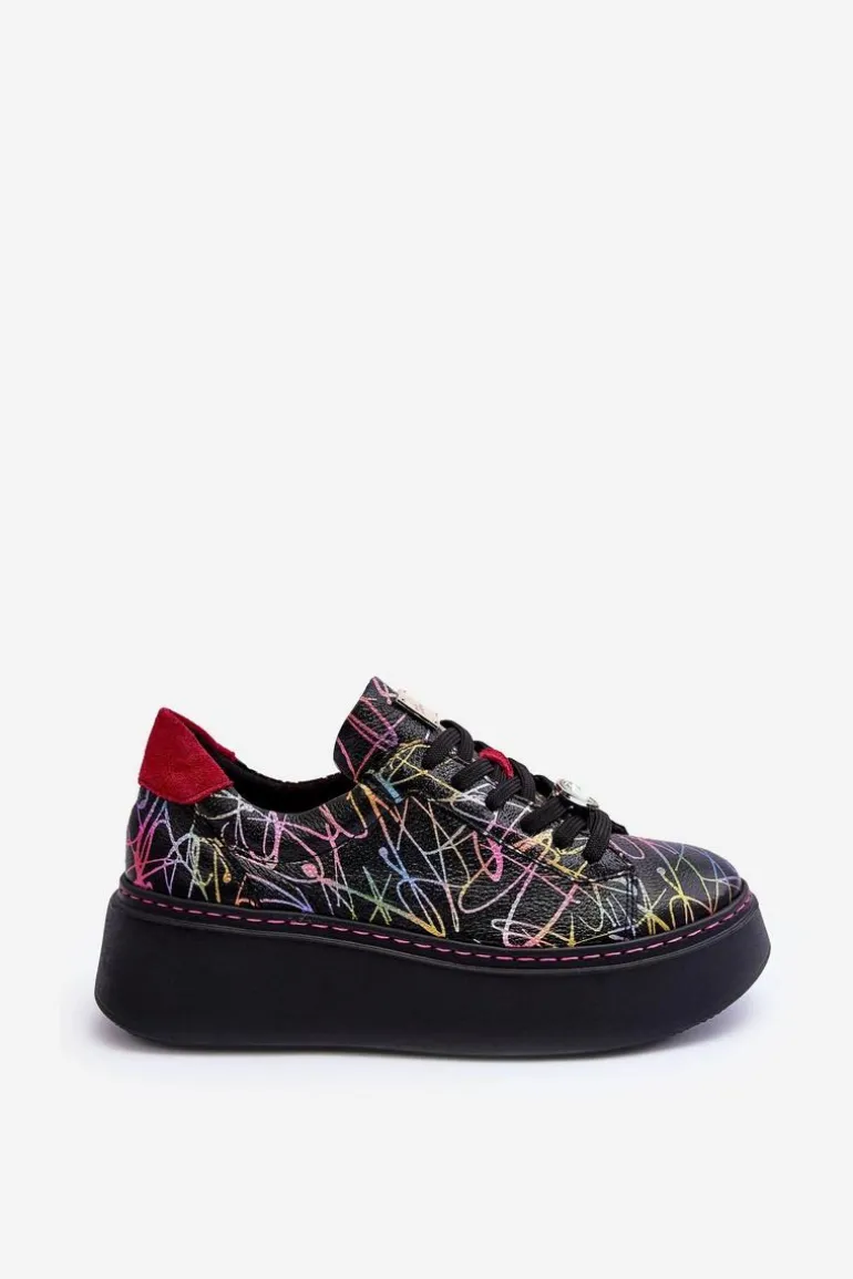 Skórzane Buty Sportowe Na Platformie Maciejka 06191-39 Multikolor