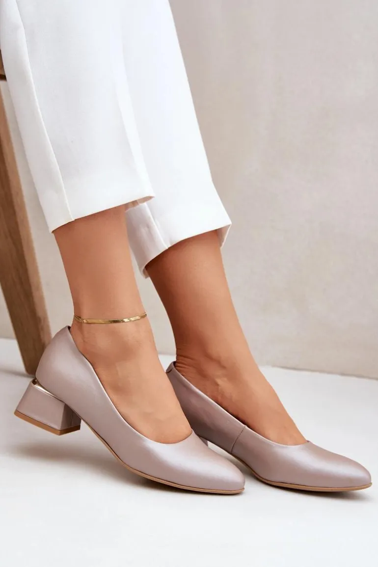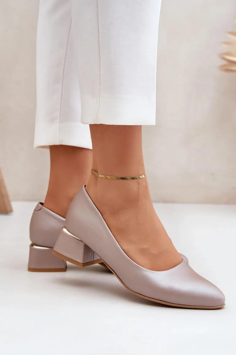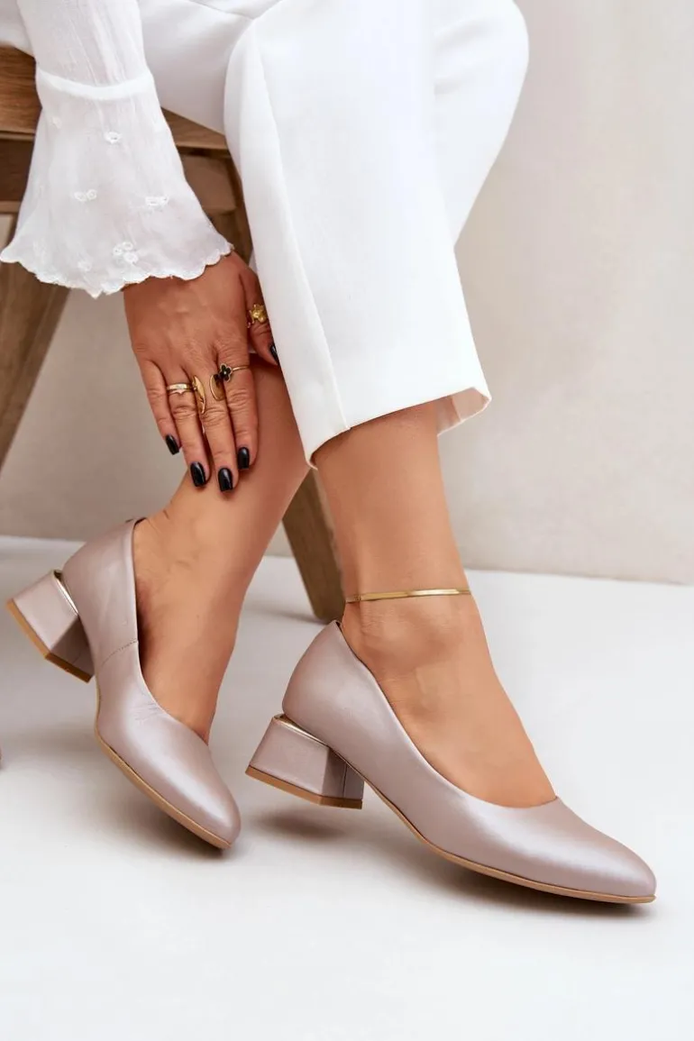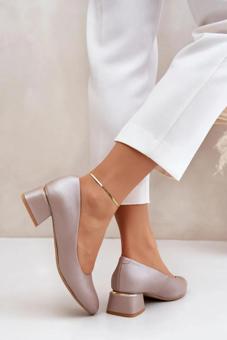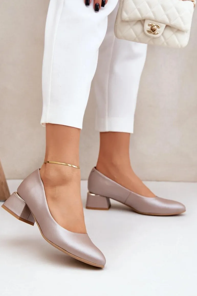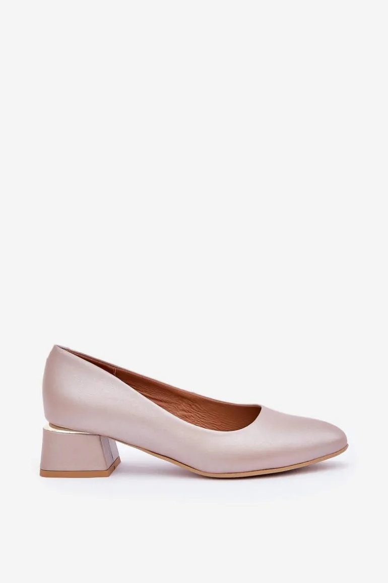 Skórzane Czółenka Lewski 3118 Ciemnobeżowe