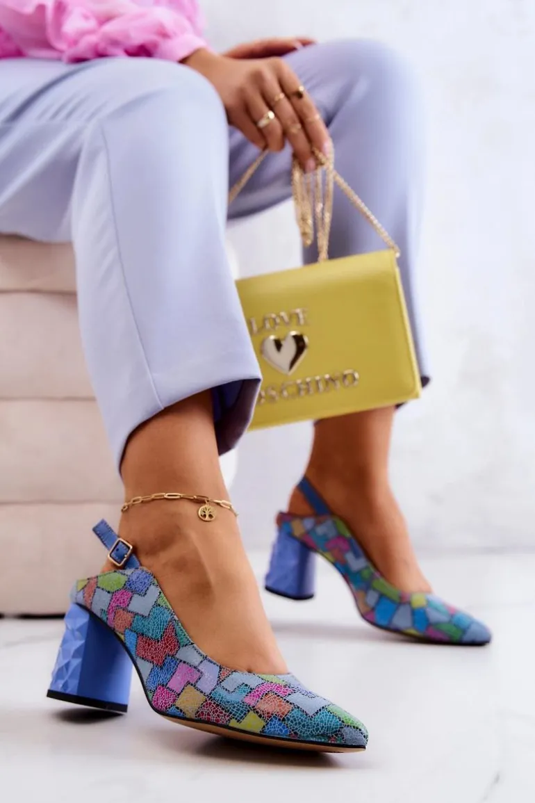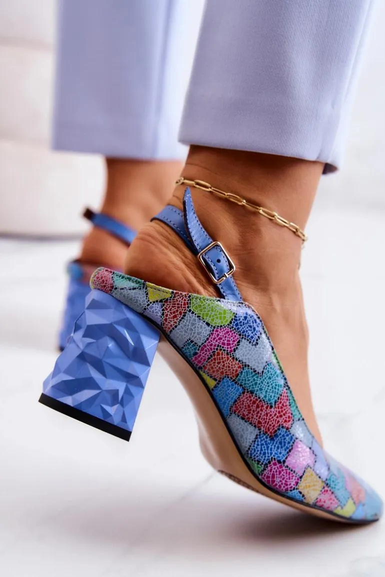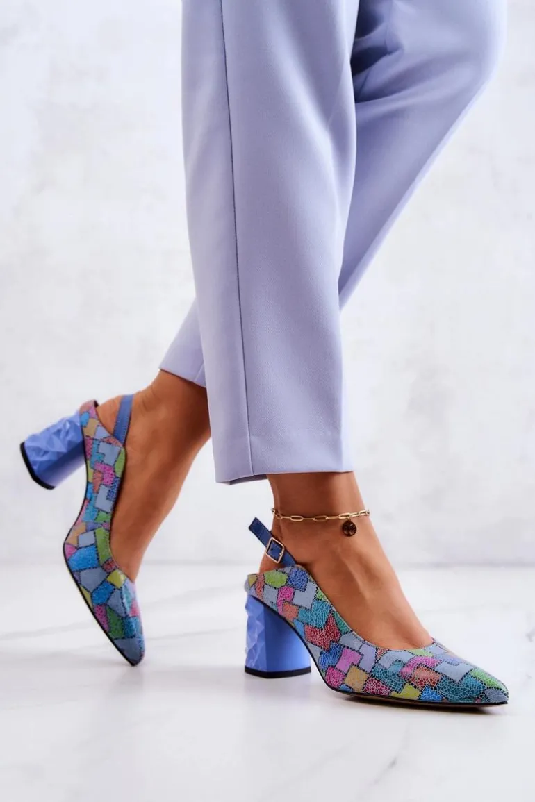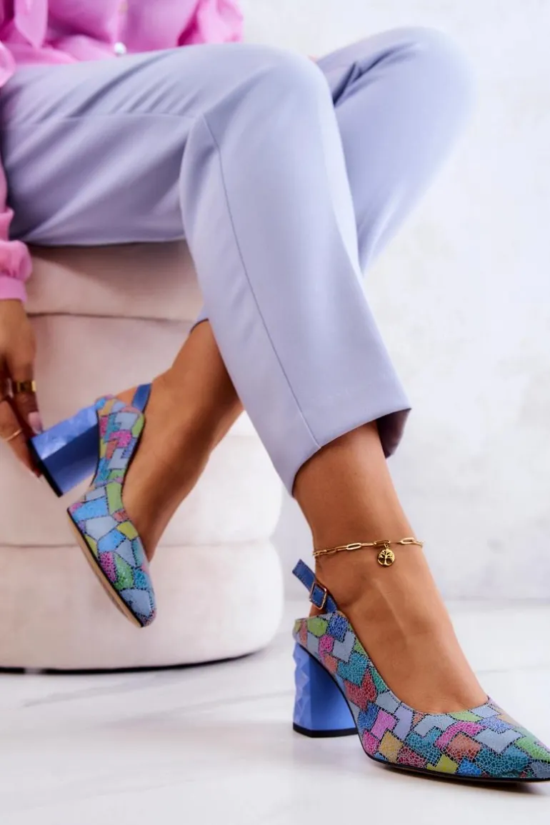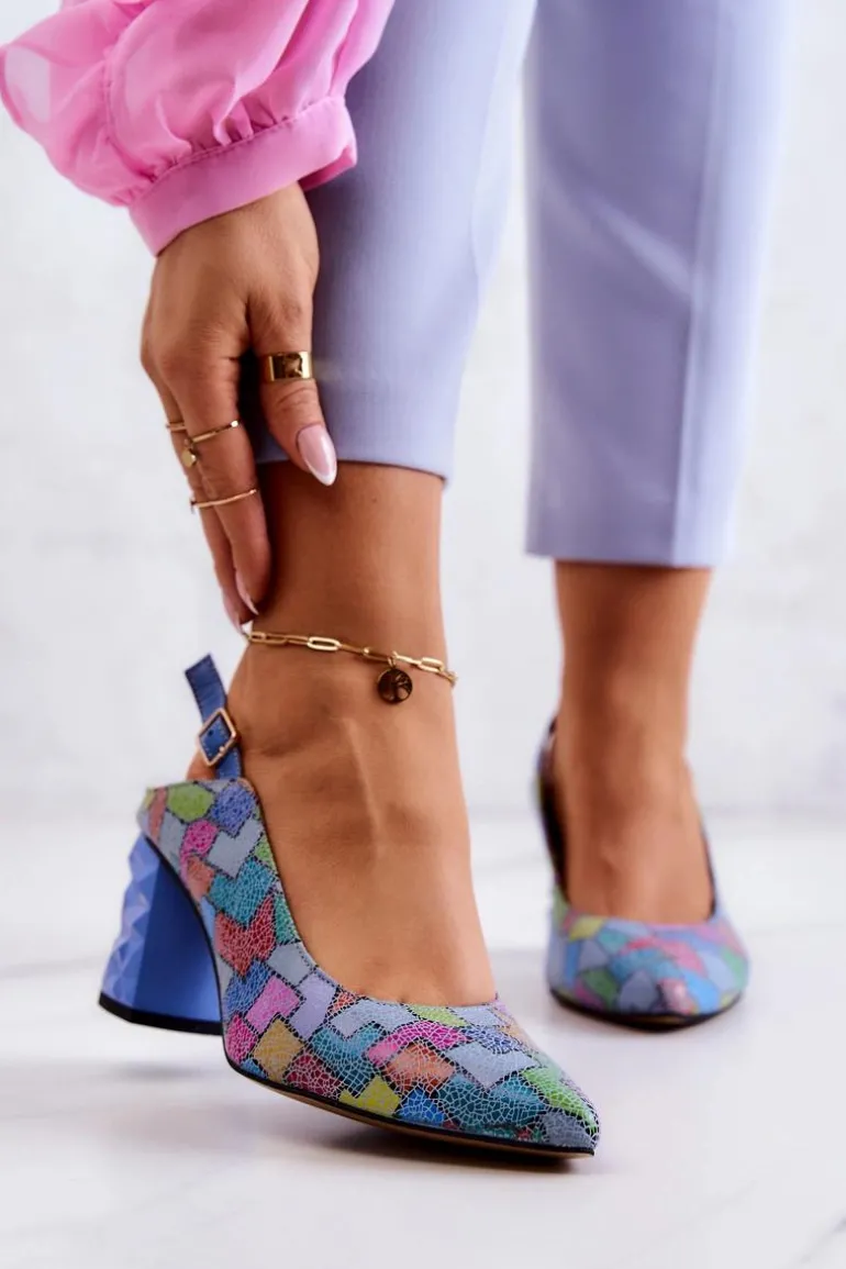Skórzane Czółenka Na Słupku Maciejka 05427-06 Multikolor