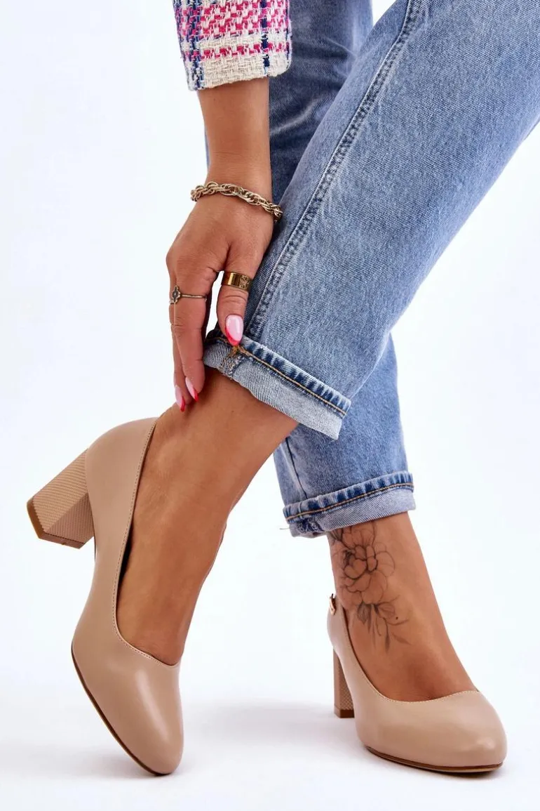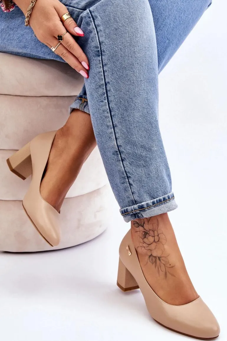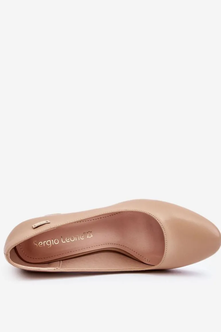 Skórzane Czółenka Na Słupku Sergio Leone PB178 Beżowe