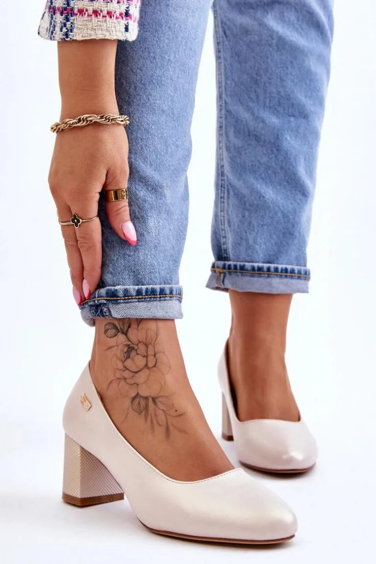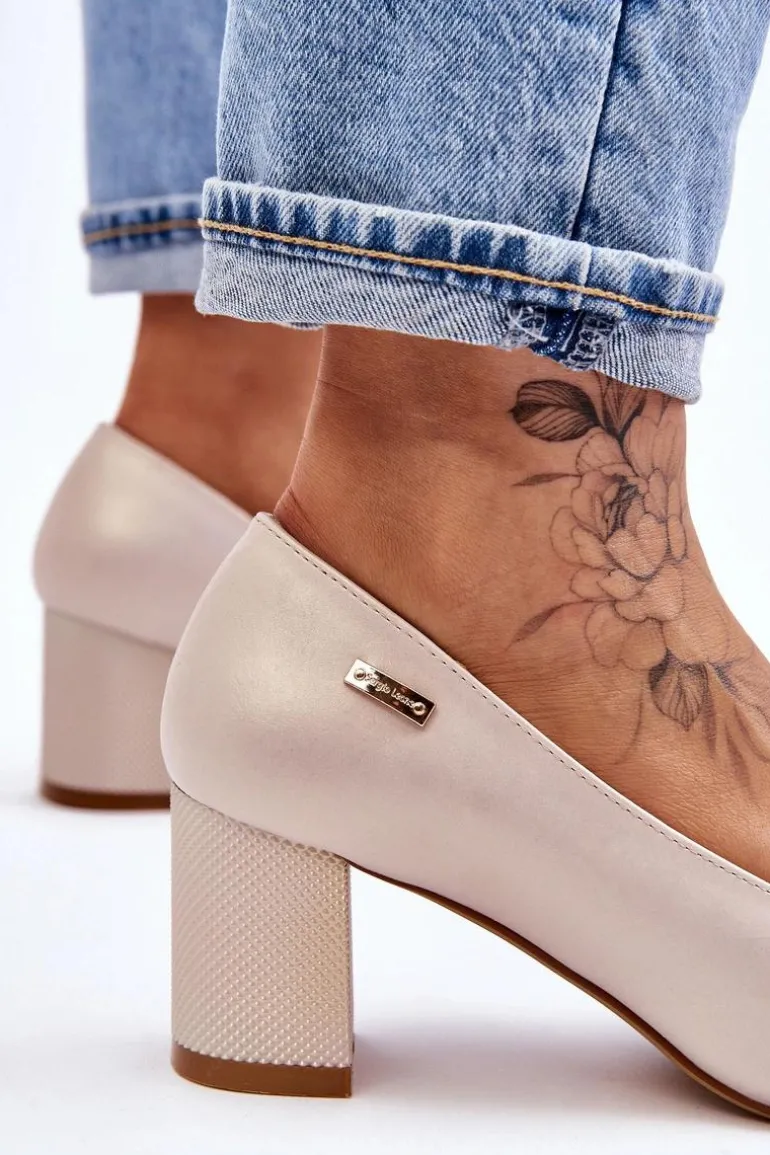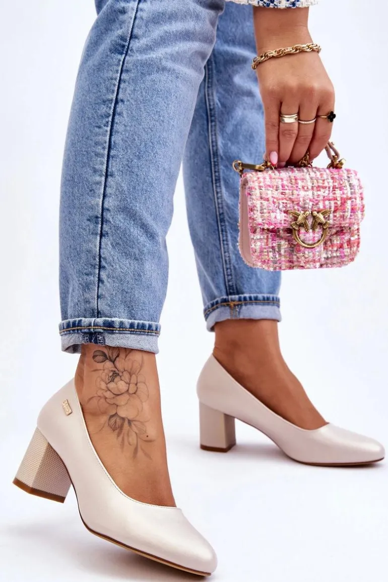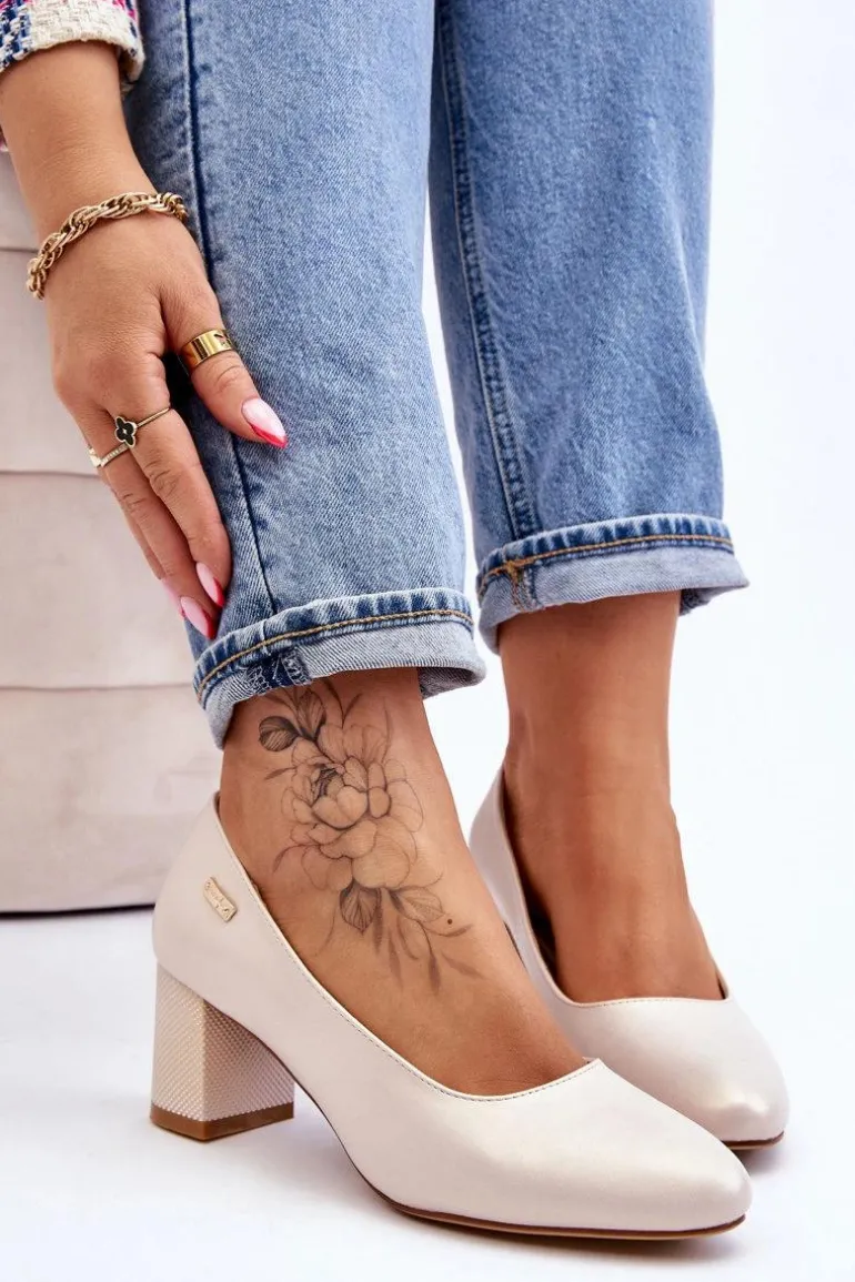 Skórzane Czółenka Na Słupku Sergio Leone PB178 Perła Beżowe
