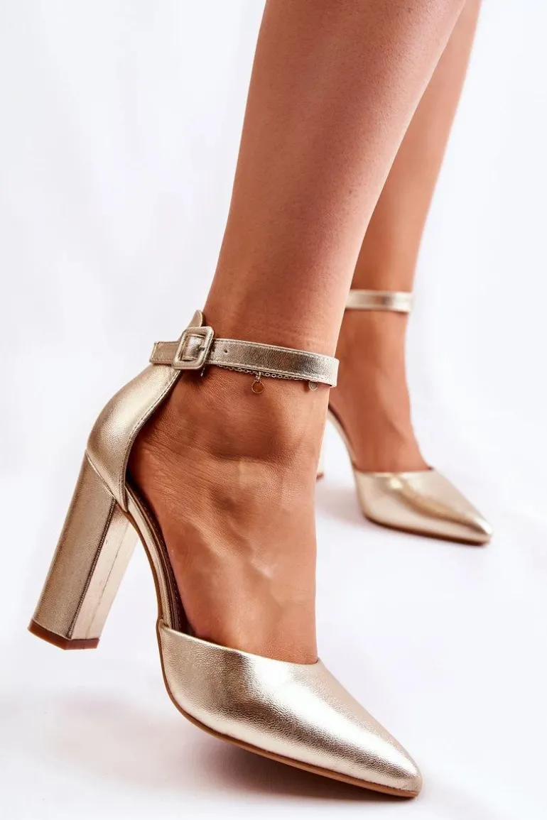 Klasyczne czółenka osadzone na wysokim obcasie w postaci słupka. Zapinane na regulowany pasek ze sprzączką znajdującą się na wysokości kostki z dodatkową gumką. Model z noskiem w szpic. Buty te zostały wykonane z eko skóry. Model z usztywnianym zapiętkiem. Idealne do wieczorowych sukienek czy eleganckich kombinezonów. Świetnie sprawdzą się podczas wielu uroczystości. Przy wyborze rozmiaru prosimy sugerować się tabelą rozmiarów.
