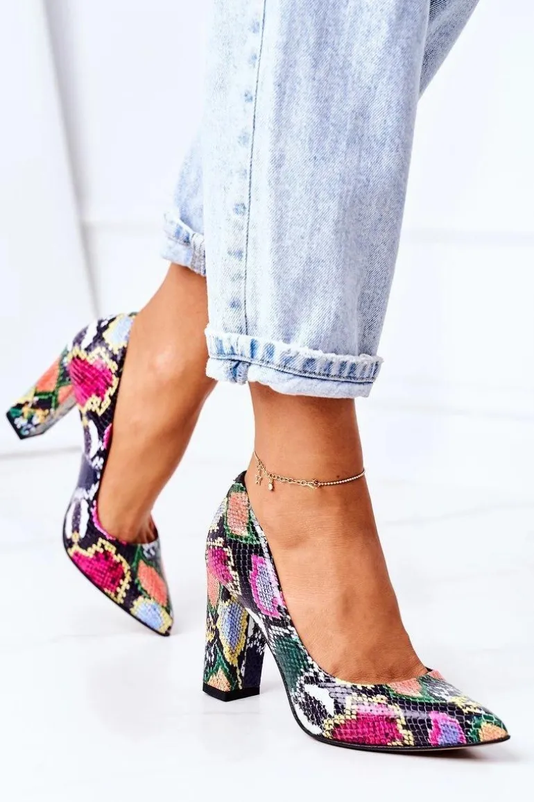 Skórzane Czółenka Z Wężowym Wzorem Lewski Shoes 2453 Kolorowe