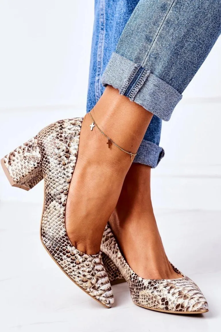 Skórzane Czółenka Z Wężowym Wzorem Lewski Shoes 2801 Złote