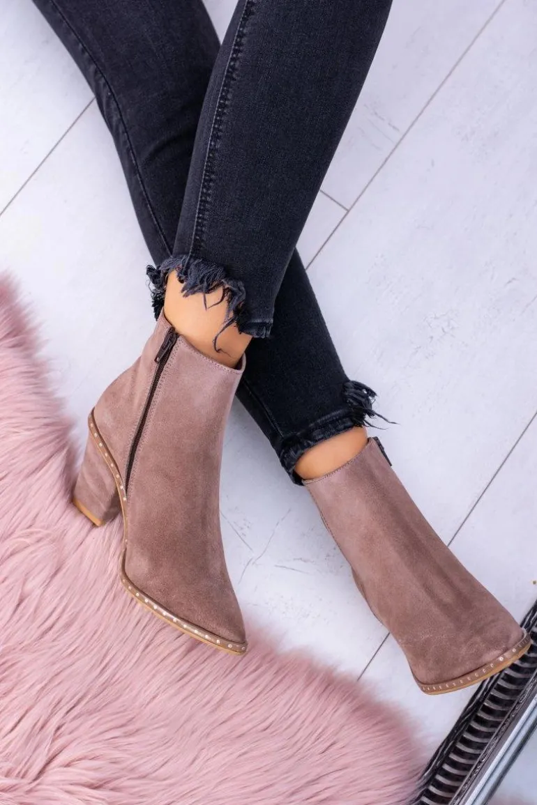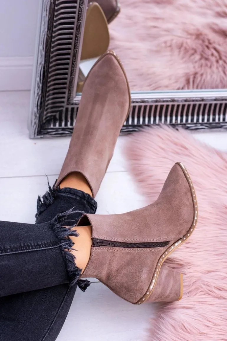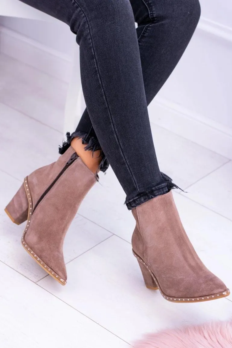 Skórzane Damskie Botki Beżowe Sonoma