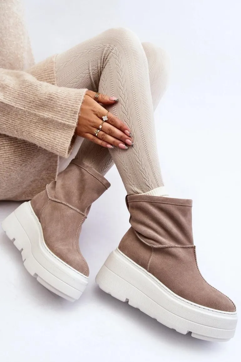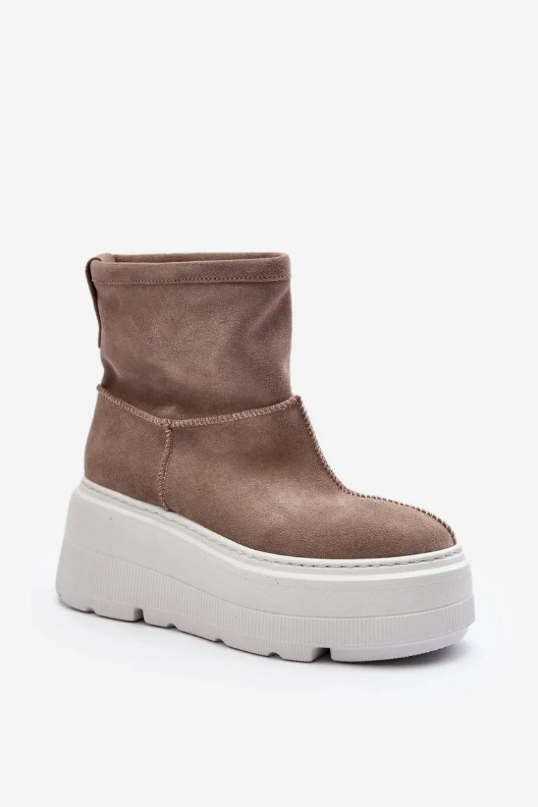 Botki damskie wykonane ze skóry naturalnej. Osadzone na masywnej podeszwie. Model wsuwany, z cholewką za kostkę. Środek ocieplony kożuszkiem. Noski zaokrąglone. Miękka wkładka zapewni wygodę podczas użytkowania. Koniecznie musisz je mieć! Przy wyborze rozmiaru prosimy sugerować się tabelą rozmiarów.