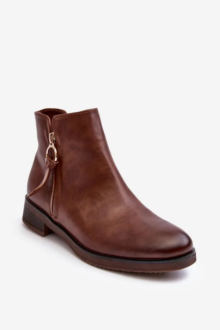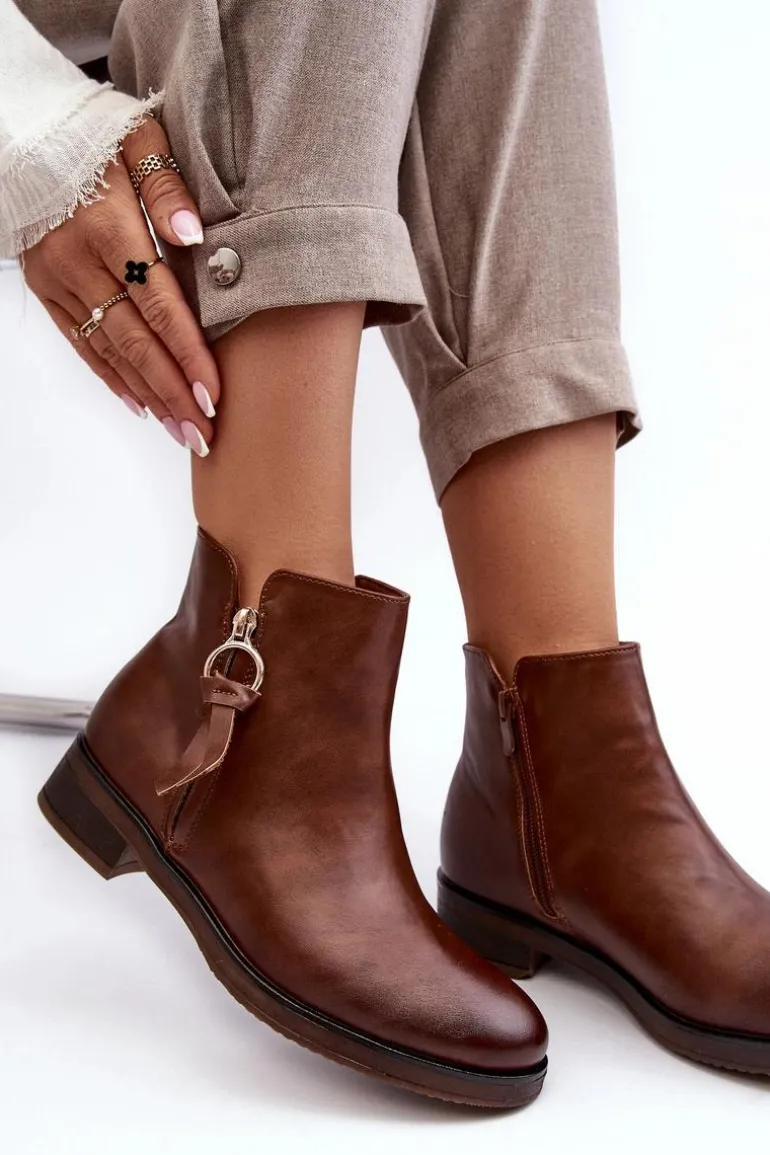 Damskie botki wykonane z eko skóry. Osadzone na płaskim obcasie. Cholewka jest zapinana na suwak po wewnętrznej stronie, natomiast drugi suwak jest ozdobny. Środek ocieplono miłym kocem obuwniczym. Model ten dodatkowo posiada usztywniany zapiętek. Koniecznie powinnaś je mieć! Przy wyborze rozmiaru prosimy sugerować się tabelą rozmiarów.