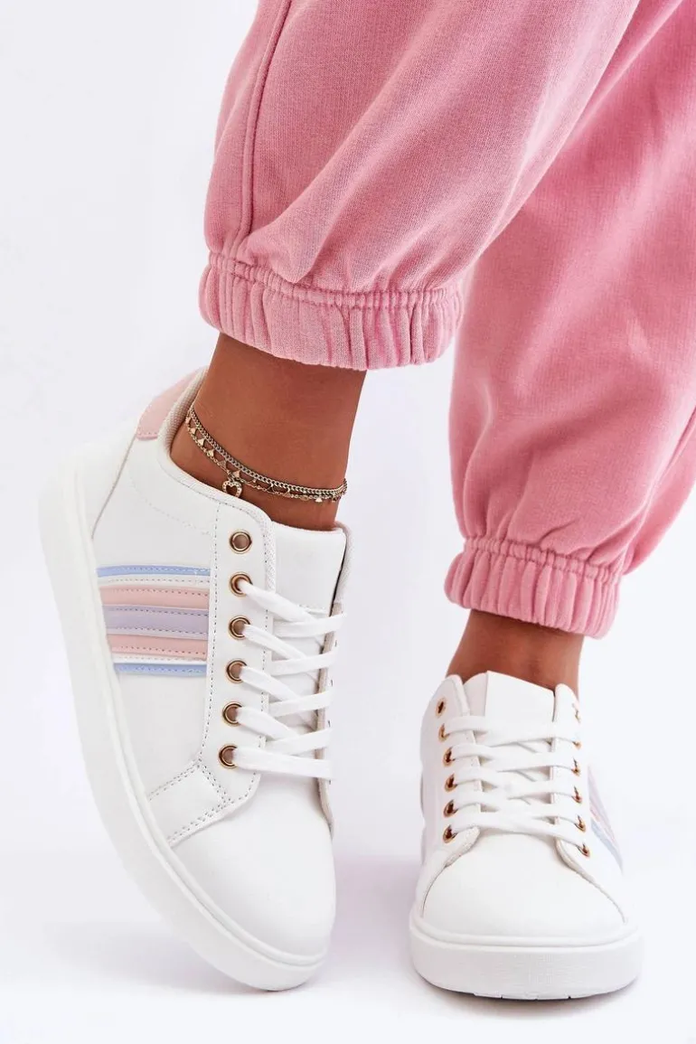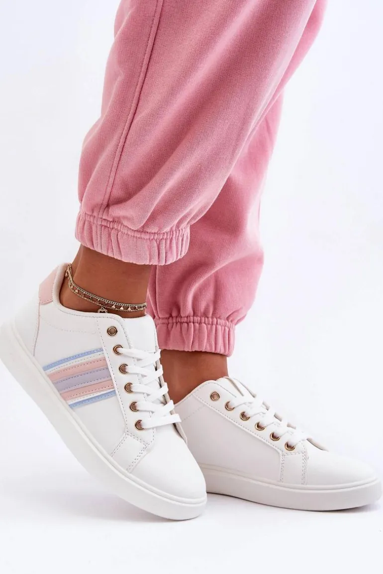 Skórzane Damskie Buty Sportowe Biało-Różowe Rilee