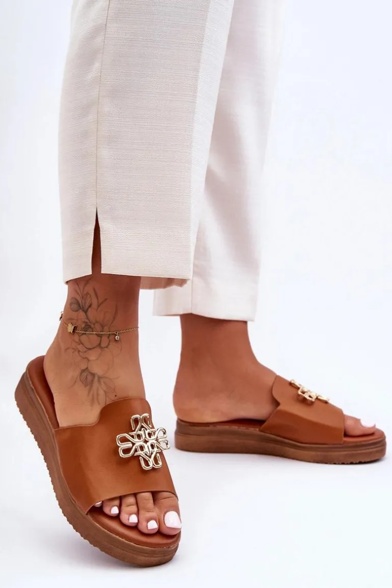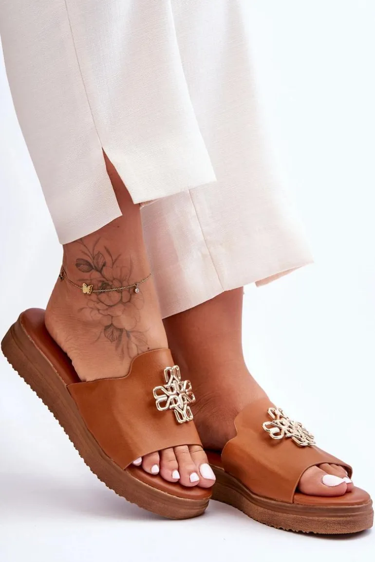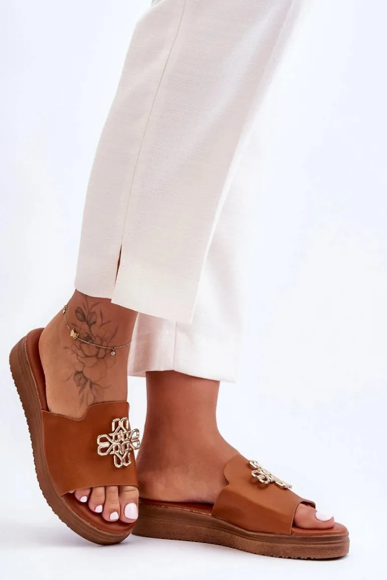Klasyczne, damskie klapki zostały wykonane z eko skóry. Model ten posiada ozdobę wykonaną z tworzywa sztucznego. Klapki osadzono na grubej platformie. Wkładka jest bardzo miękka i wygodna w użytkowaniu. Ten model powinien znaleźć się właśnie w Twojej garderobie! Przy wyborze rozmiaru prosimy sugerować się tabelą rozmiarów.