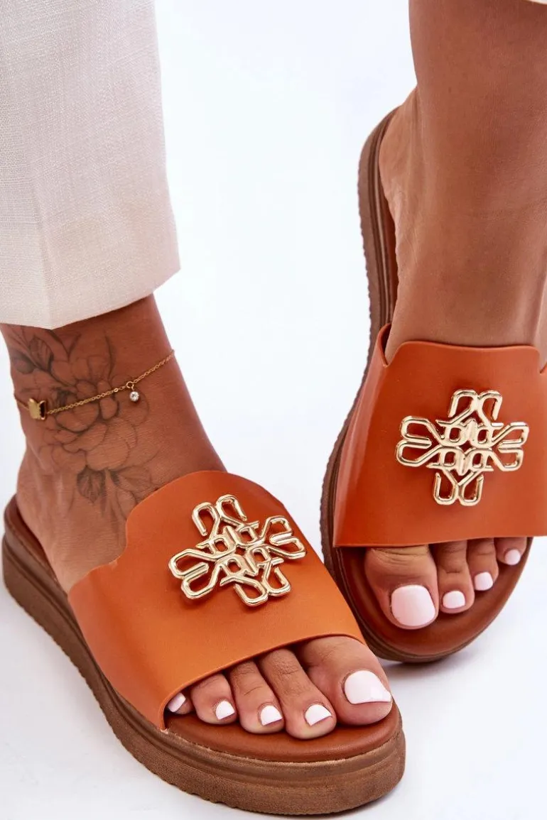 Klasyczne, damskie klapki zostały wykonane z eko skóry. Model ten posiada ozdobę wykonaną z tworzywa sztucznego. Klapki osadzono na grubej platformie. Wkładka jest bardzo miękka i wygodna w użytkowaniu. Ten model powinien znaleźć się właśnie w Twojej garderobie! Przy wyborze rozmiaru prosimy sugerować się tabelą rozmiarów.