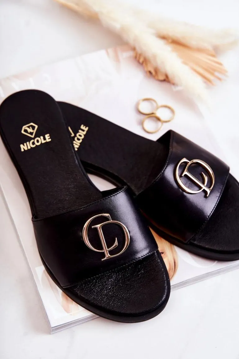Skórzane Damskie Klapki Nicole 2735 Czarne