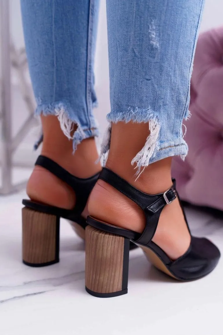 Skórzane Damskie Sandały Maciejka Czarne 04117
