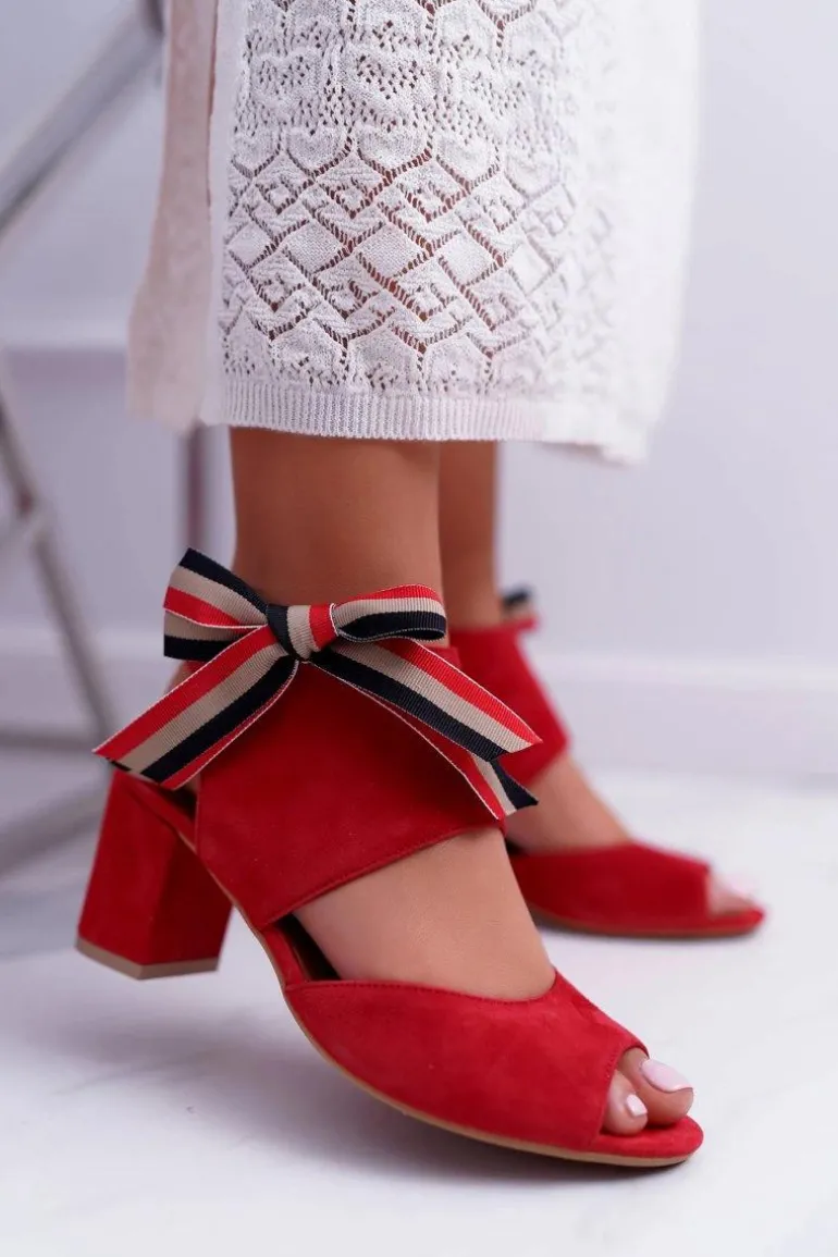 Skórzane Damskie Sandały Maciejka Na Słupku Czerwone 04038-08