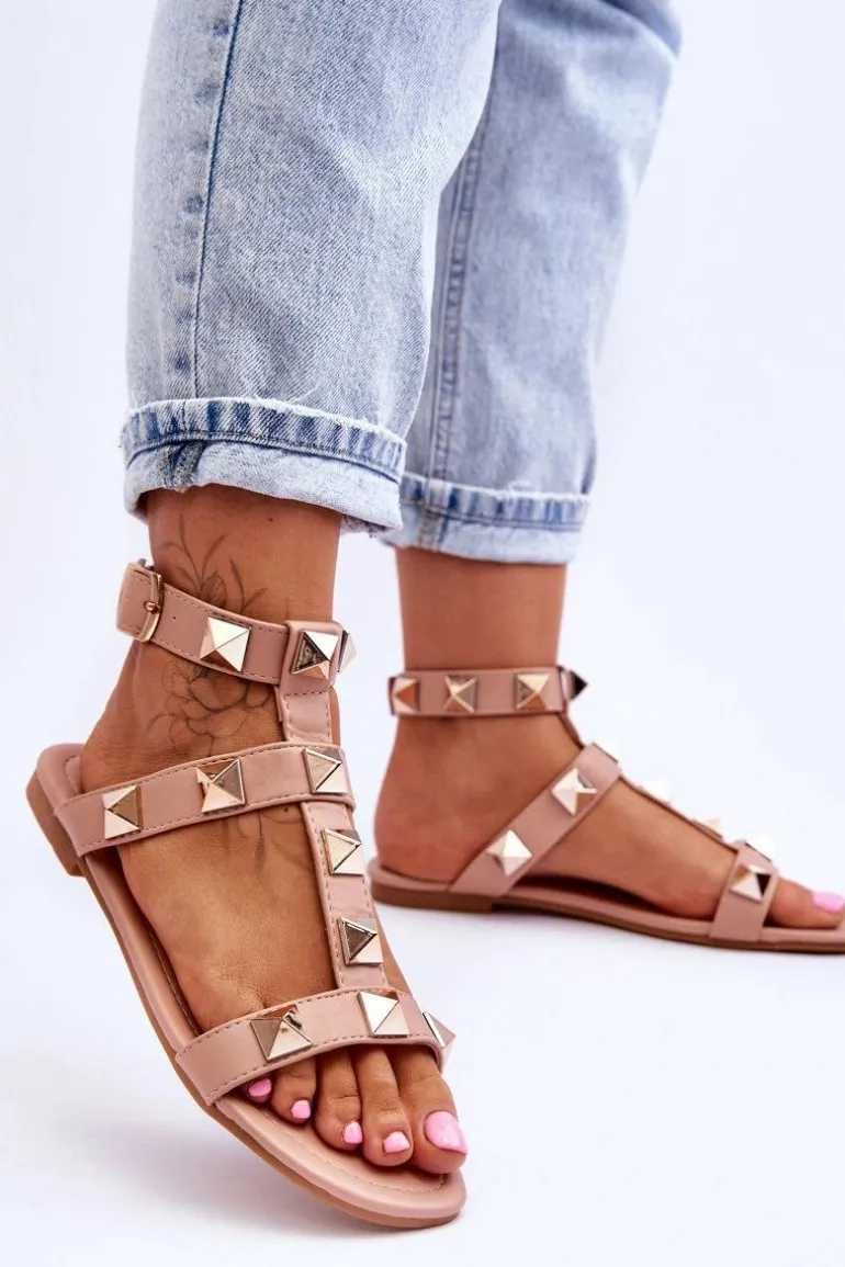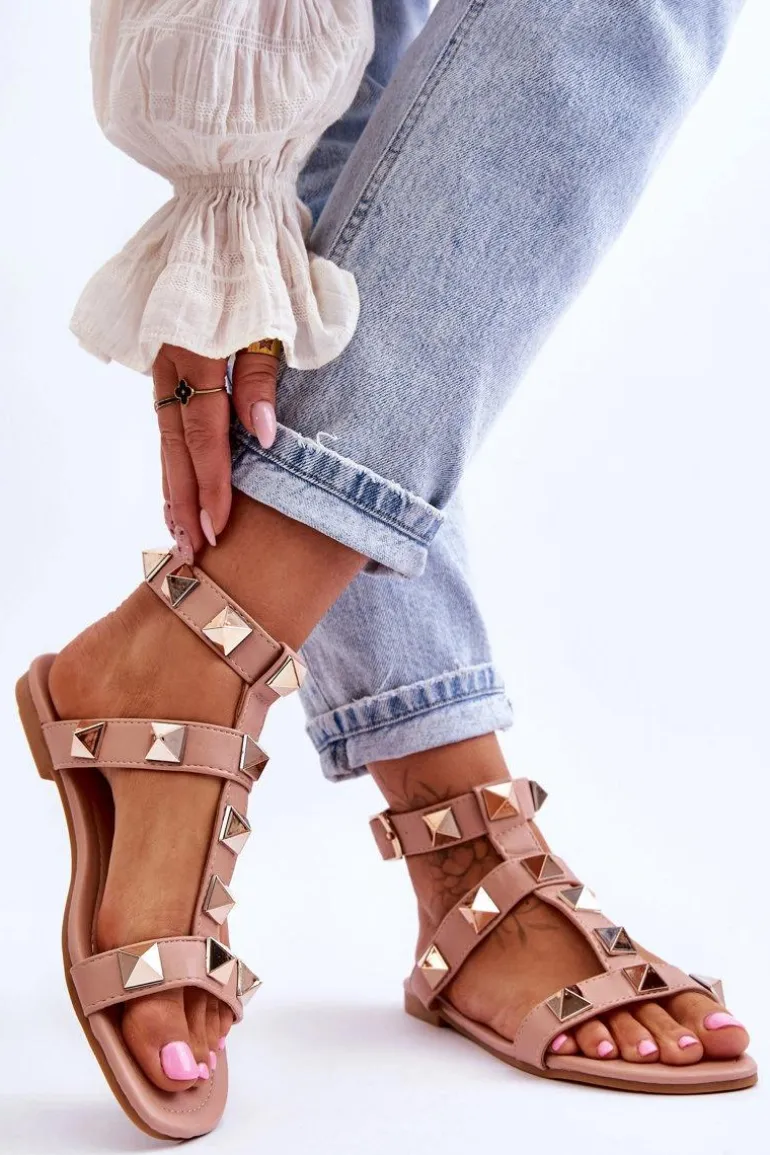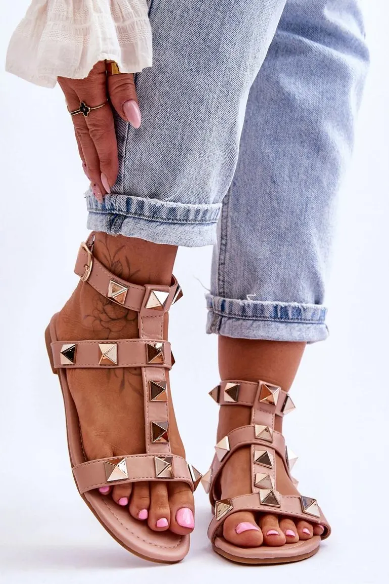 Skórzane Damskie Sandały Z Dużymi Ćwiekami Nude Mishigan