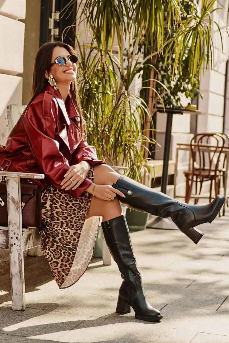 Eleganckie kozaki damskie wykonane z naturalnej skóry. Osadzone na obcasie w formie słupka. Noski zaokrąglone. Zapinane na zamek. Środek ocieplany kocem obuwniczym, co zapewni ciepło i komfort w mroźniejsze dni. Cholewka sięga do kolana. Idealne do sukienek i spódnic! Przy wyborze rozmiaru prosimy sugerować się tabelą rozmiarów.