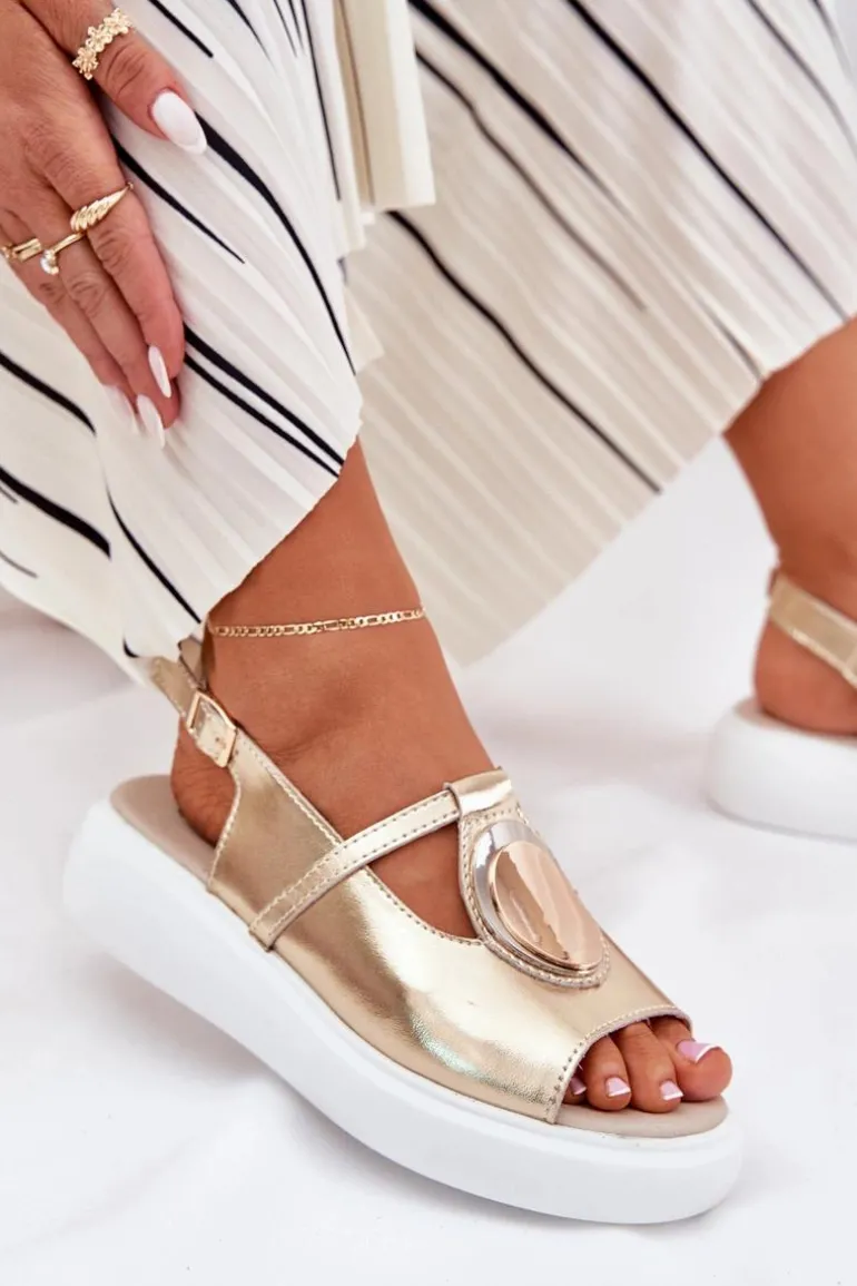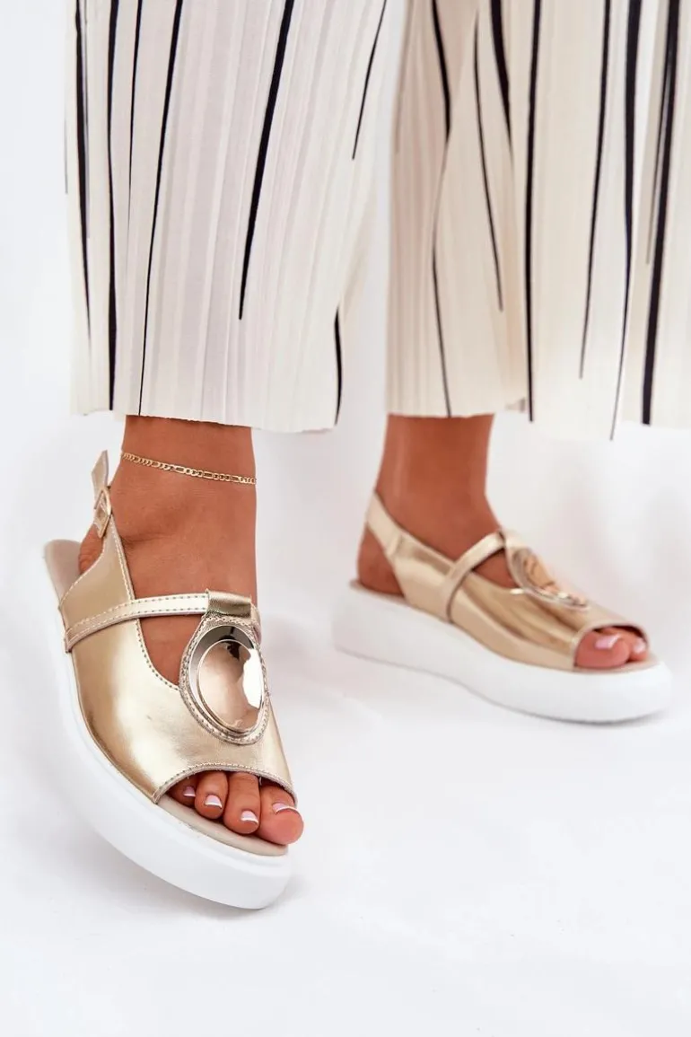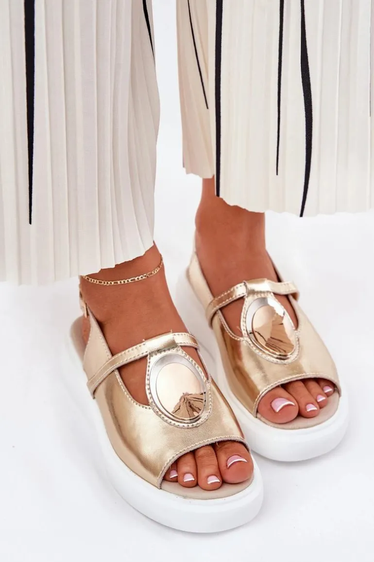Skórzane Eleganckie Sandały Damskie S.Barski GR51-603 Złote